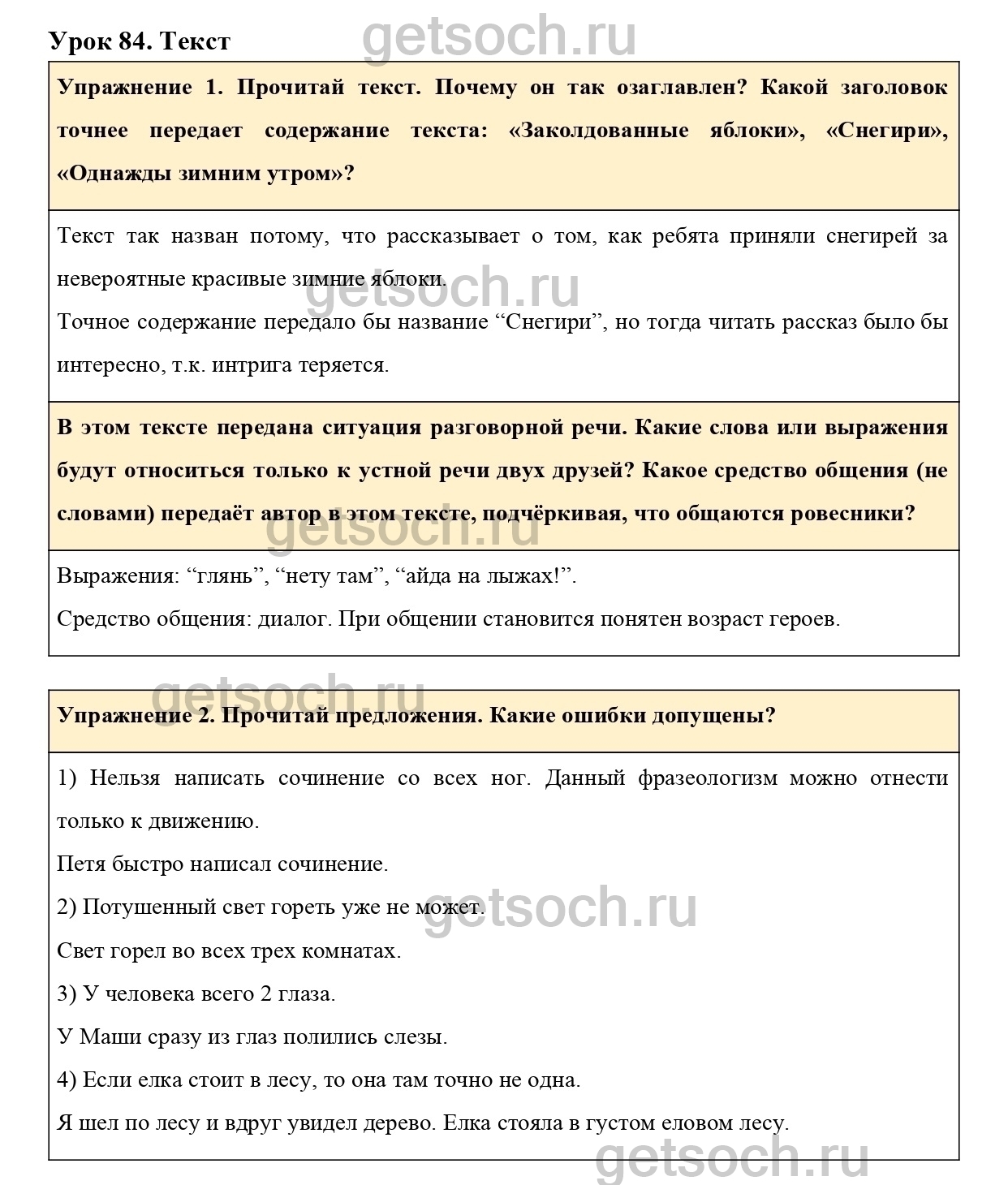 Рассмотрим ответы на Урок 84 из учебника по русскому языку для 4 класса Иванова