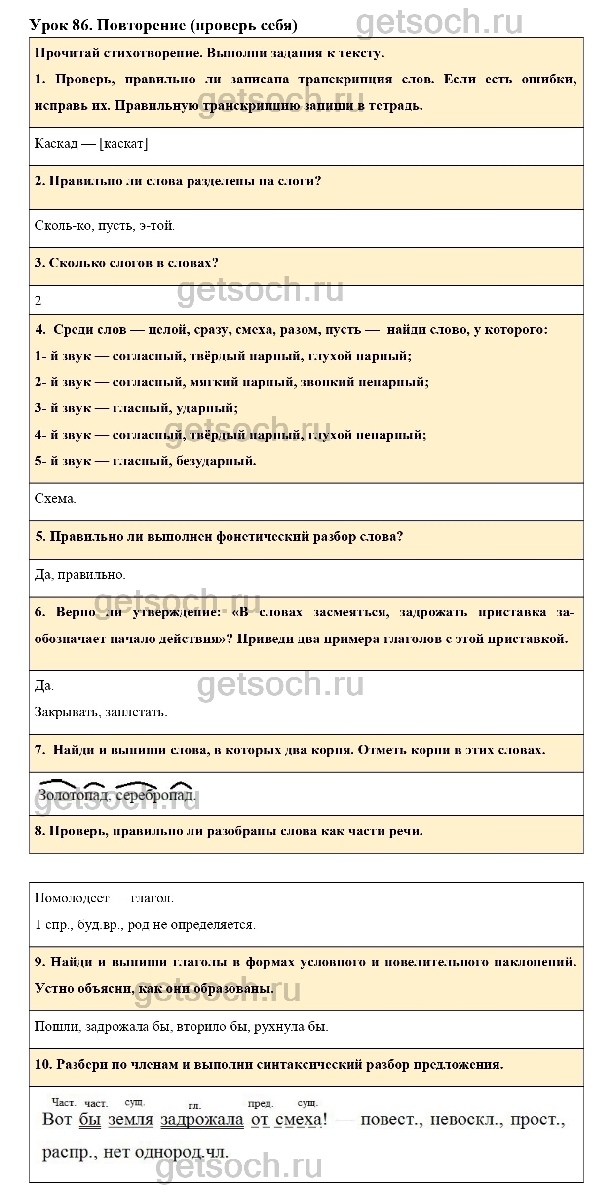 Рассмотрим ответы на Урок 86 из учебника по русскому языку для 4 класса Иванова