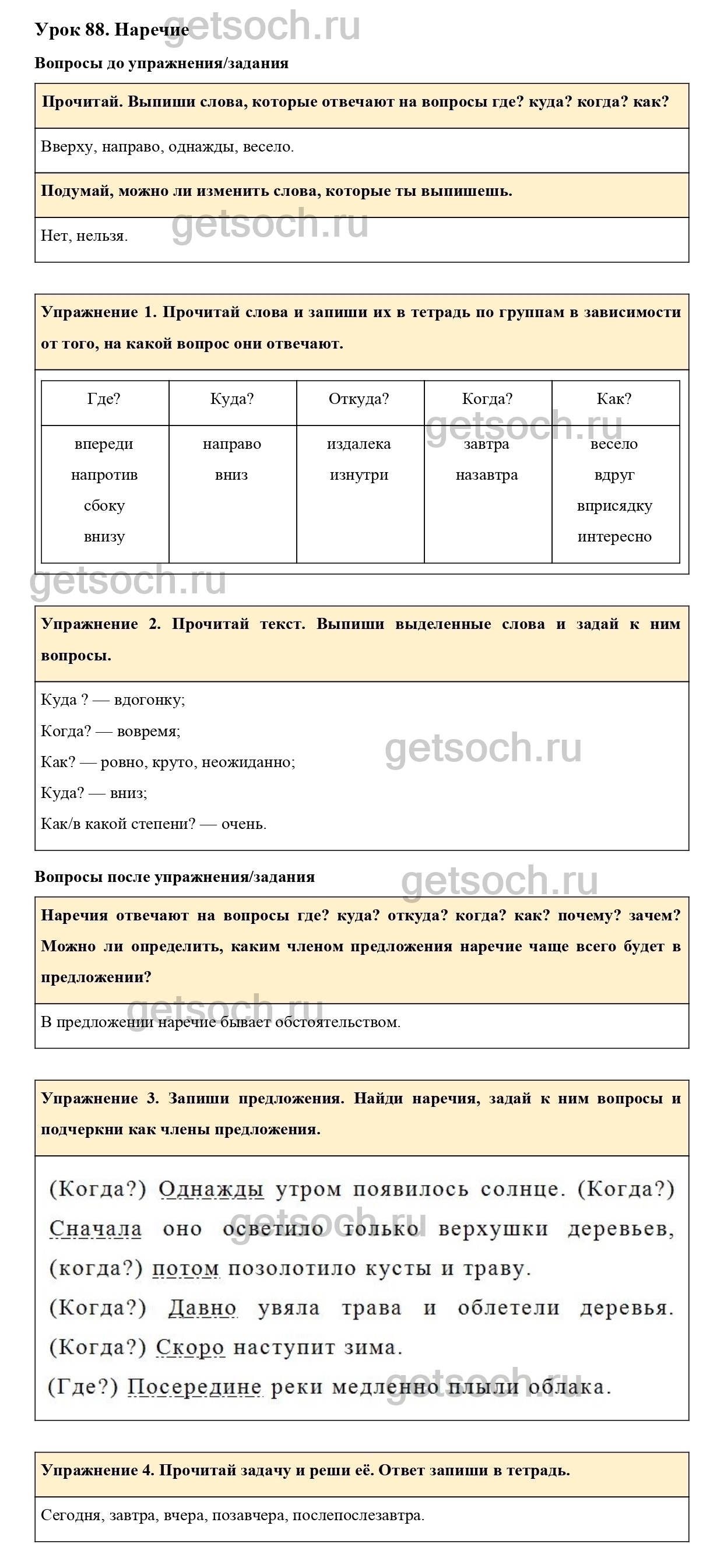 Рассмотрим ответы на Урок 88 из учебника по русскому языку для 4 класса Иванова