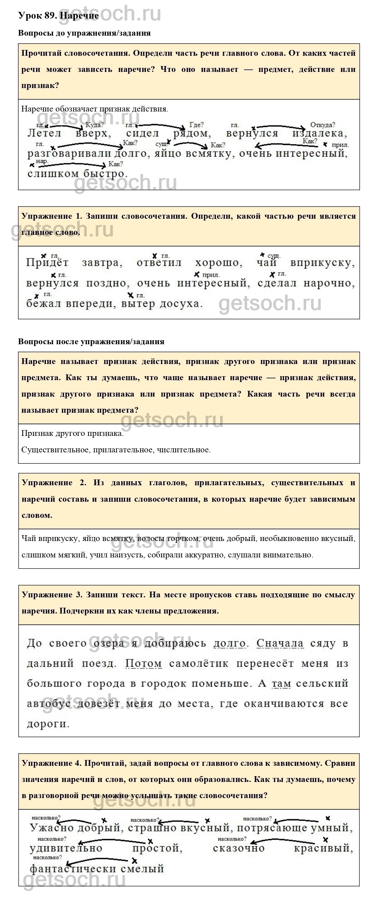 Рассмотрим ответы на Урок 89 из учебника по русскому языку для 4 класса Иванова