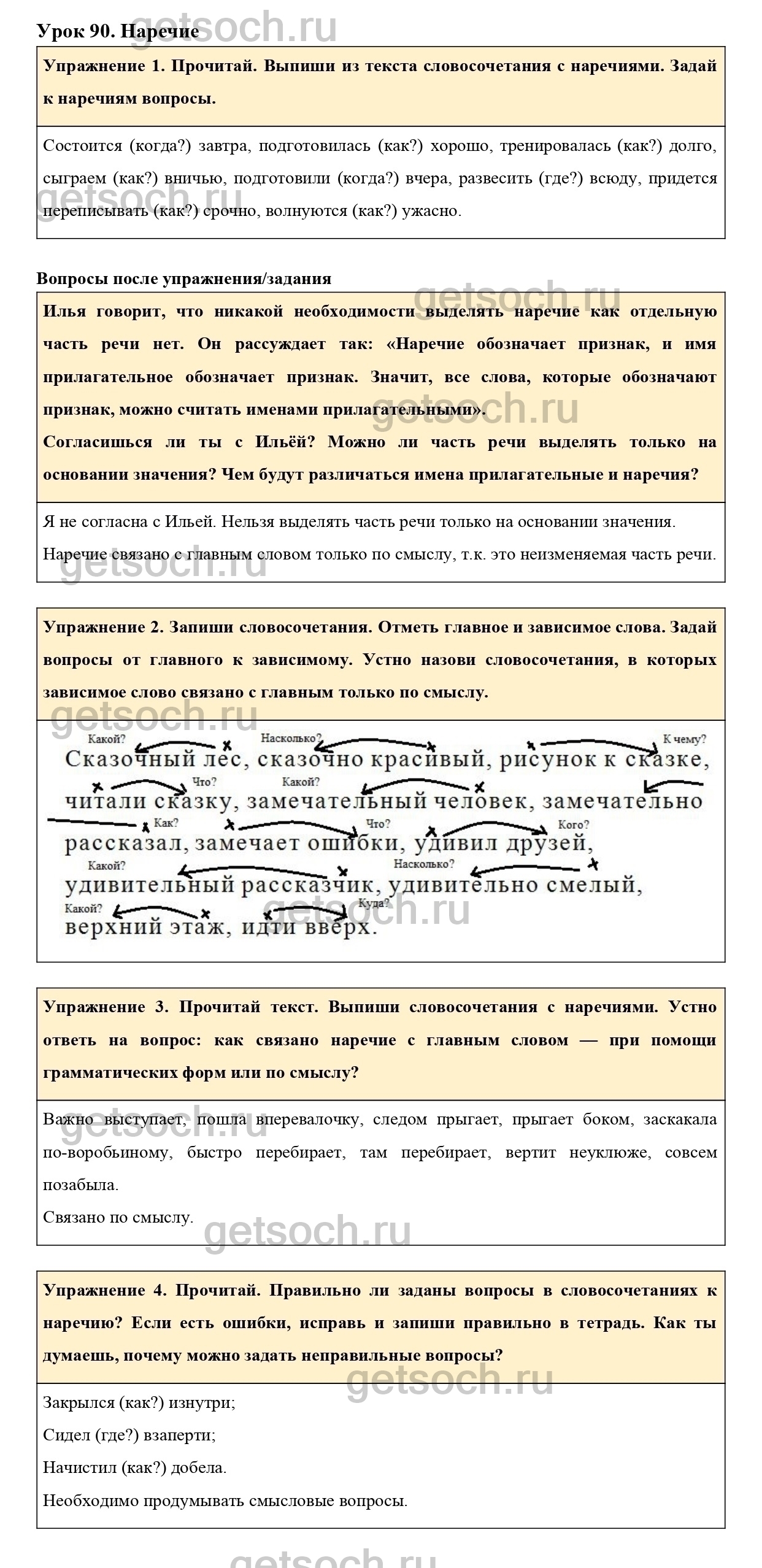 Рассмотрим ответы на Урок 90 из учебника по русскому языку для 4 класса Иванова