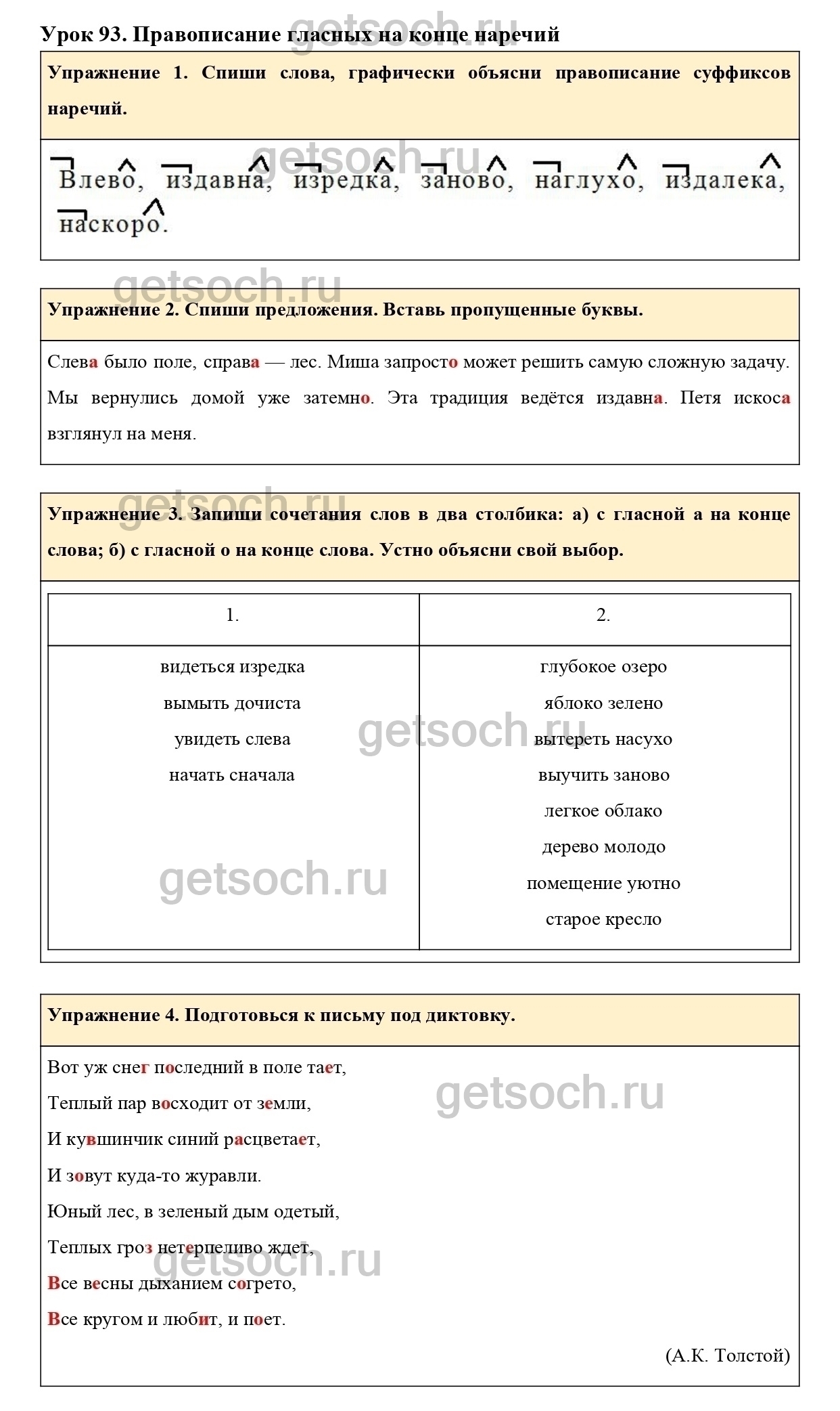 Рассмотрим ответы на Урок 93 из учебника по русскому языку для 4 класса Иванова