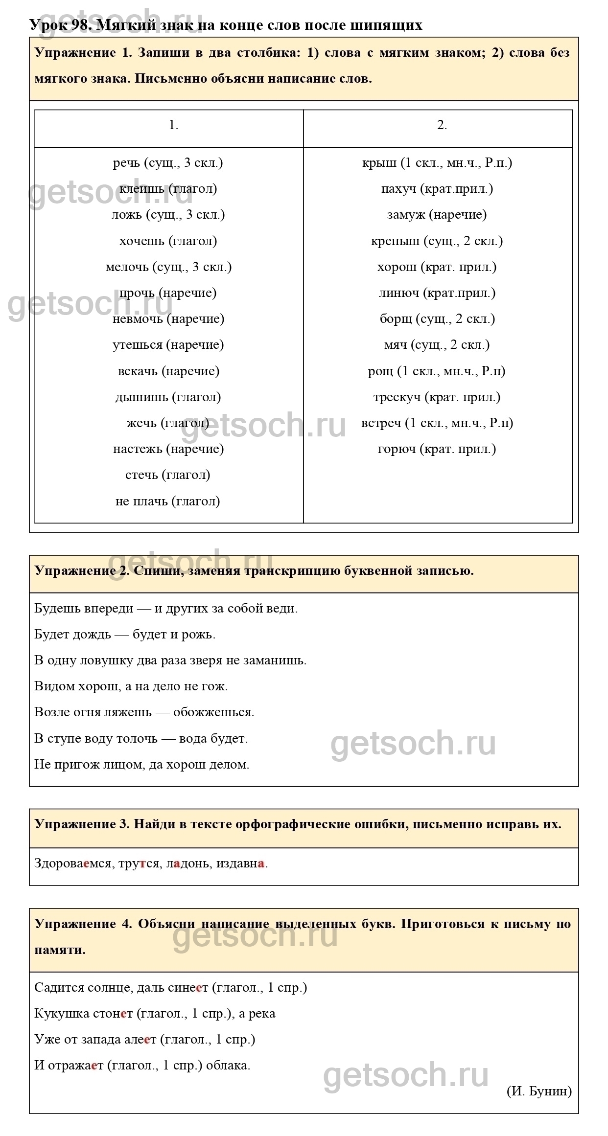 Рассмотрим ответы на Урок 98 из учебника по русскому языку для 4 класса Иванова