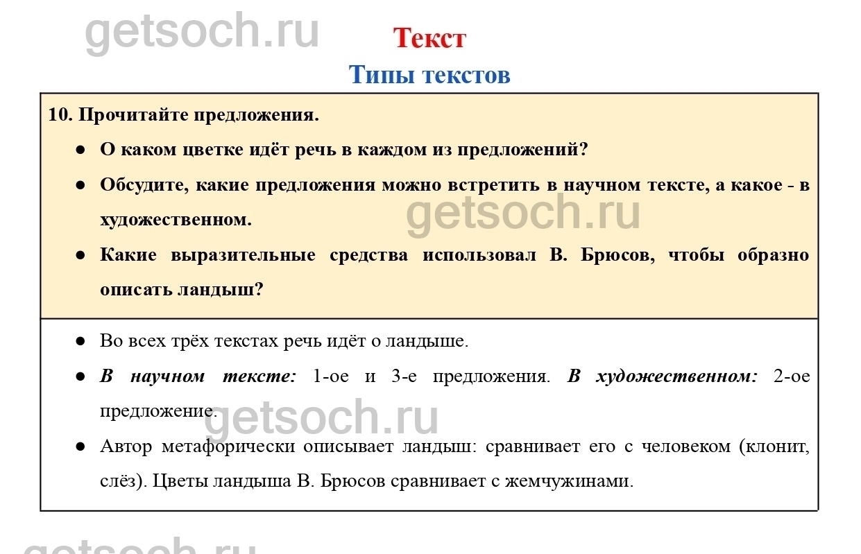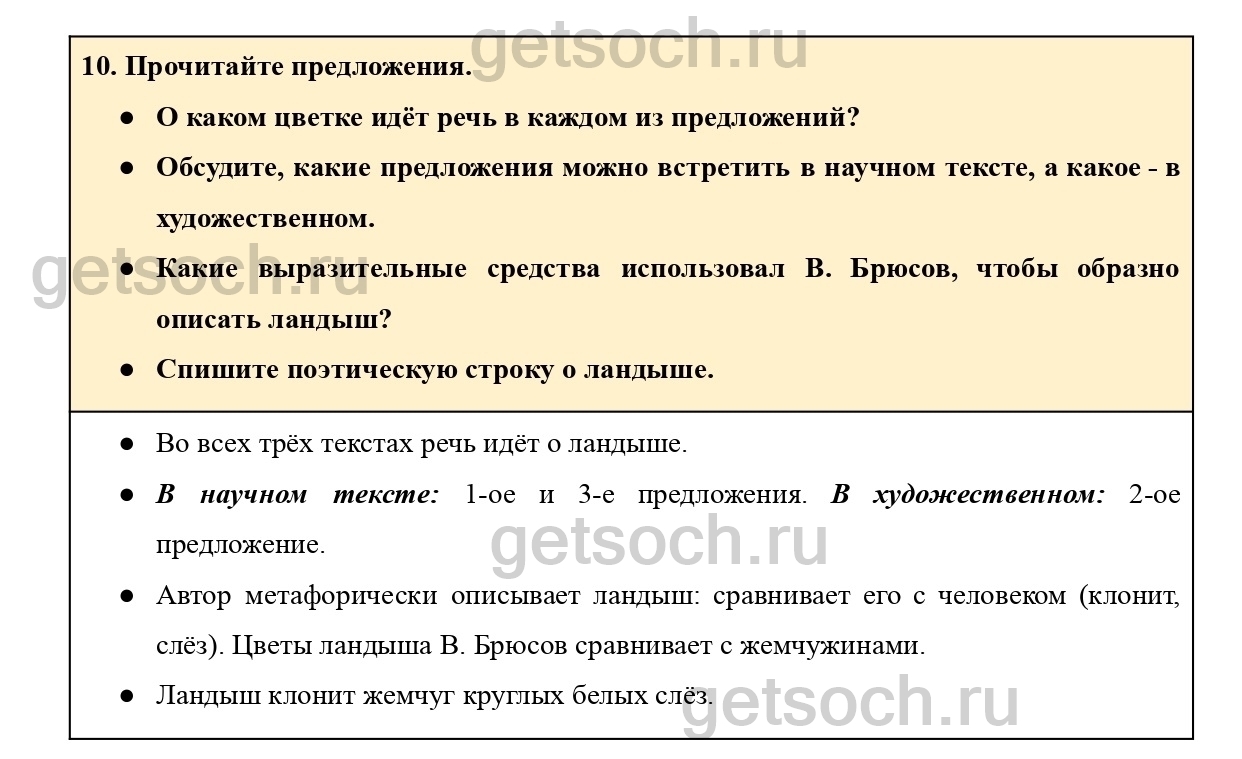 Рассмотрим ответы на Упражнение 10 из учебника по русскому языку для 4 класса Канакиной