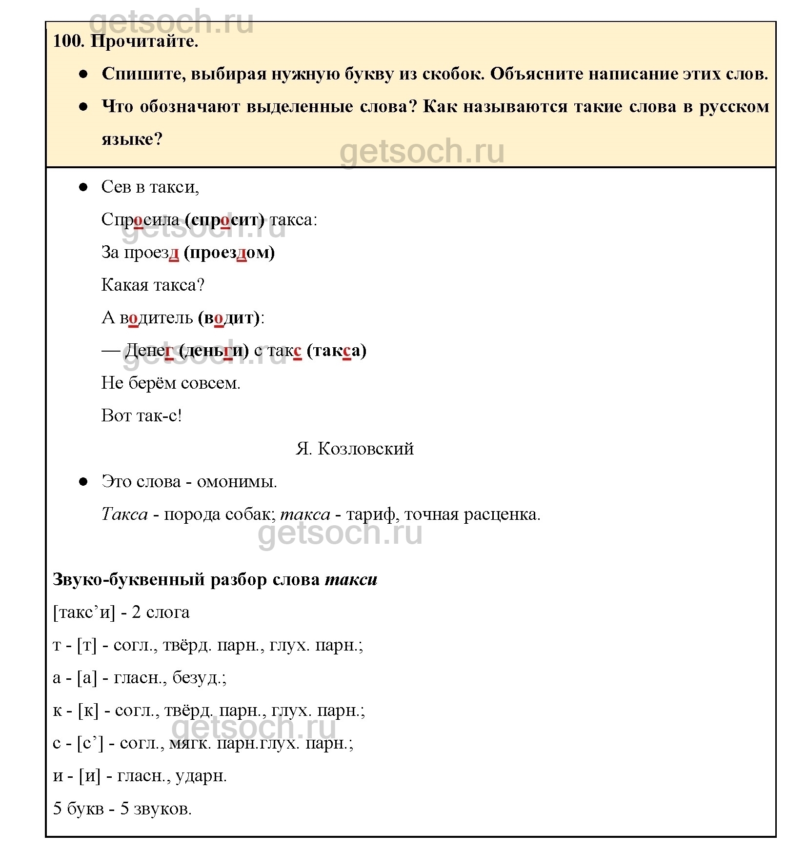 Рассмотрим ответы на Упражнение 100 из учебника по русскому языку для 4 класса Канакиной
