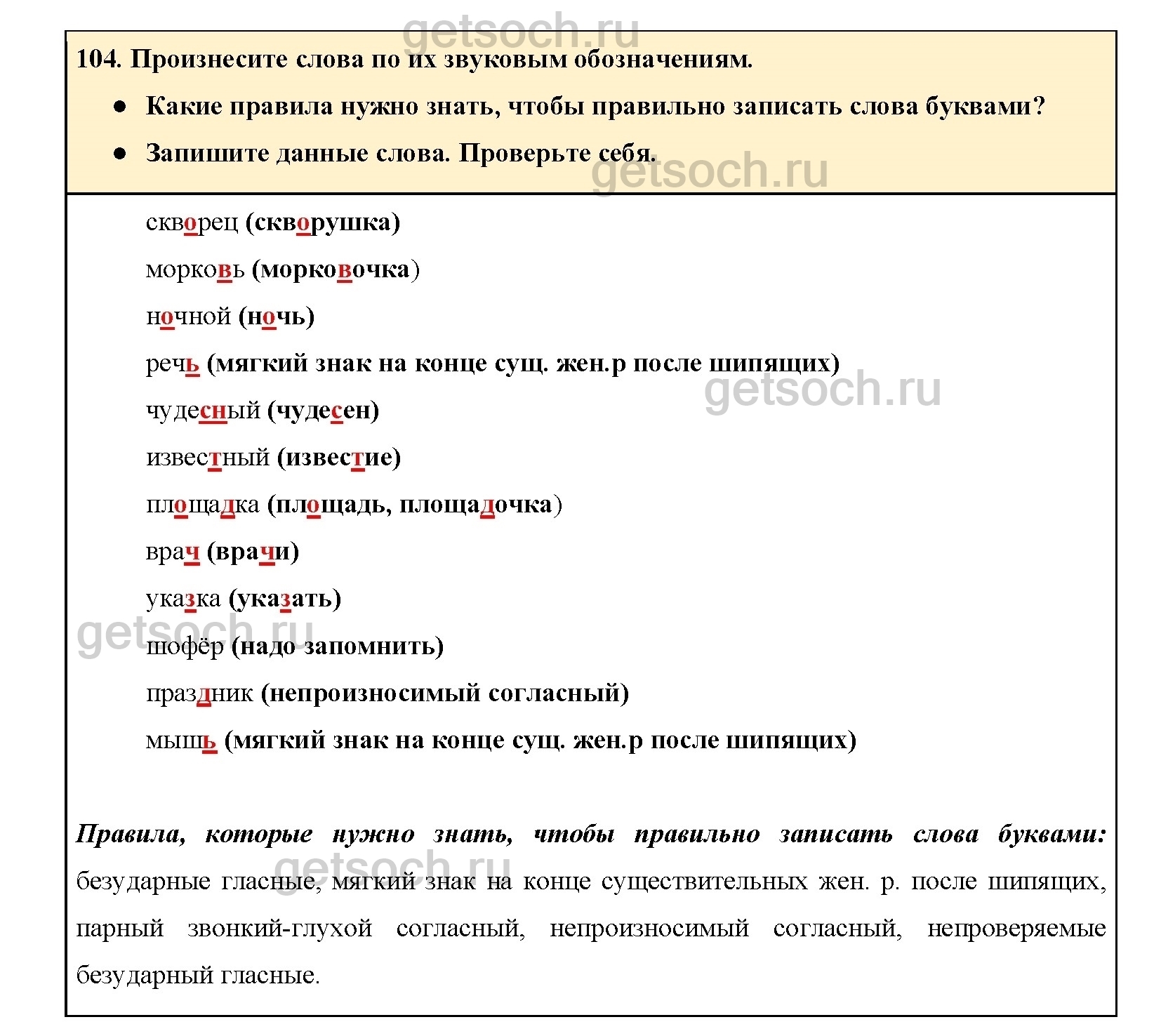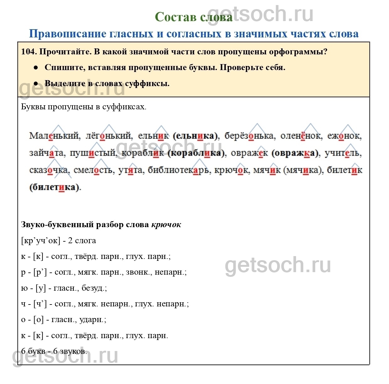 Рассмотрим ответы на Упражнение 104 из учебника по русскому языку для 4 класса Канакиной