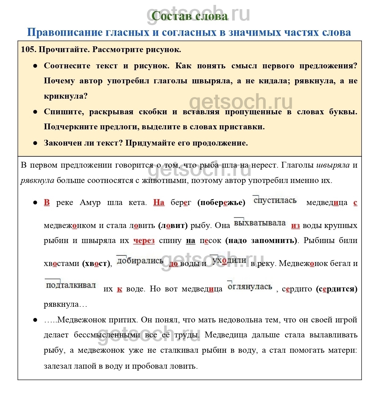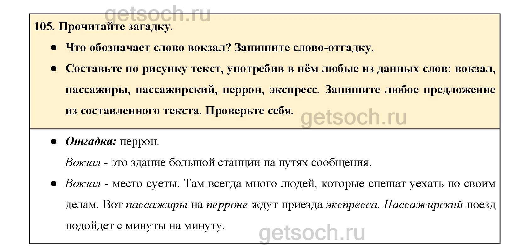Рассмотрим ответы на Упражнение 105 из учебника по русскому языку для 4 класса Канакиной