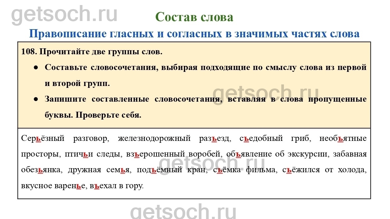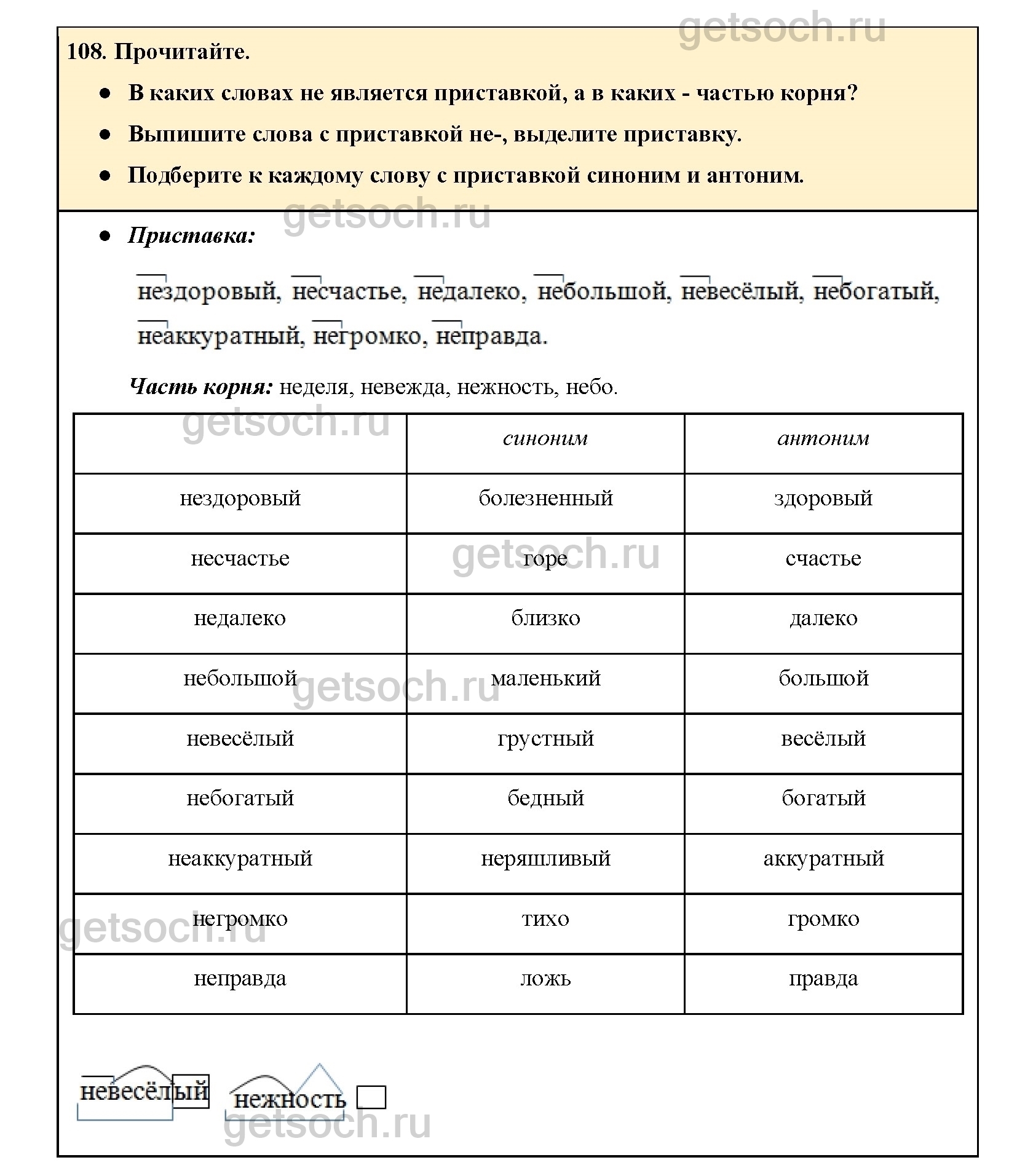 Рассмотрим ответы на Упражнение 108 из учебника по русскому языку для 4 класса Канакиной