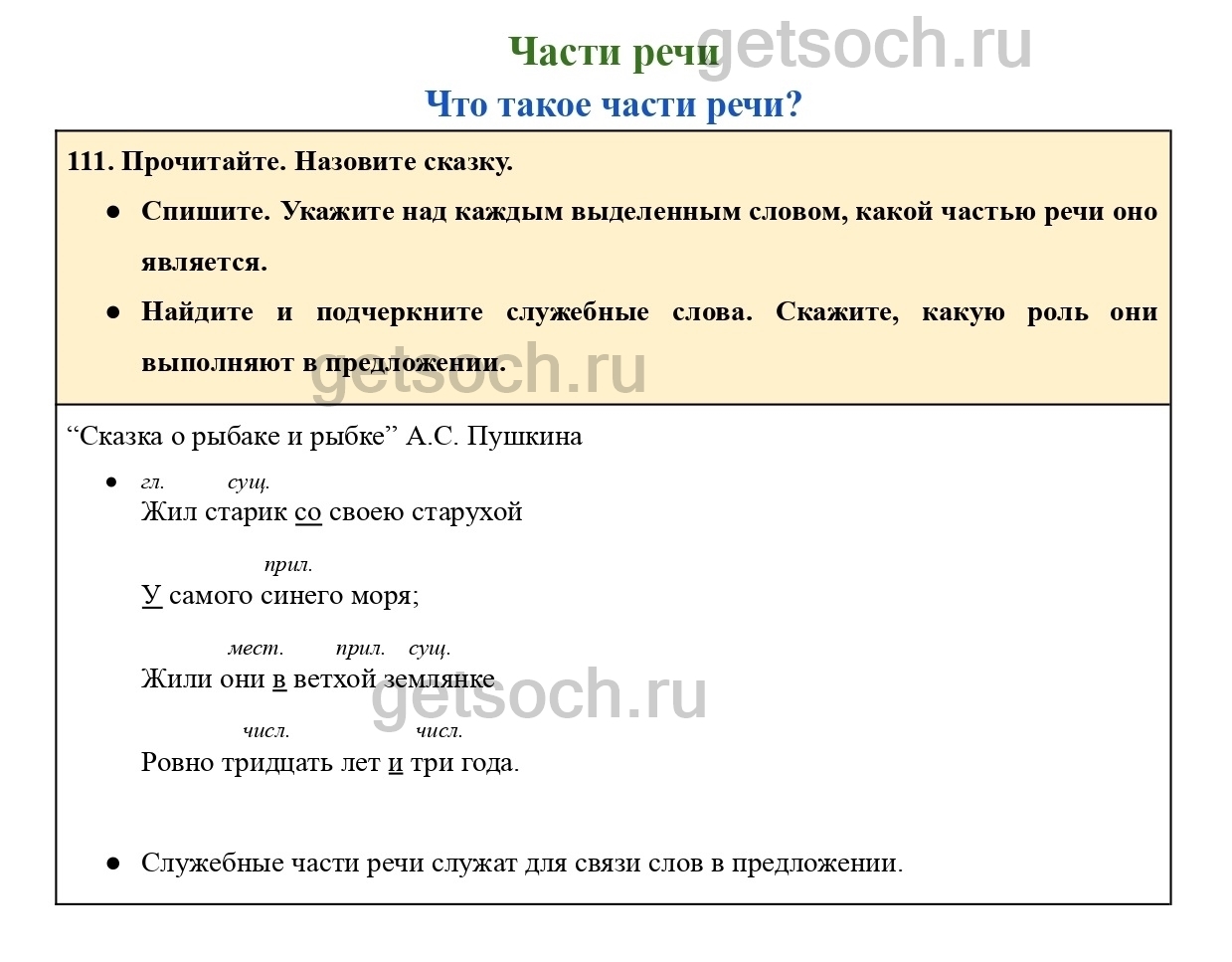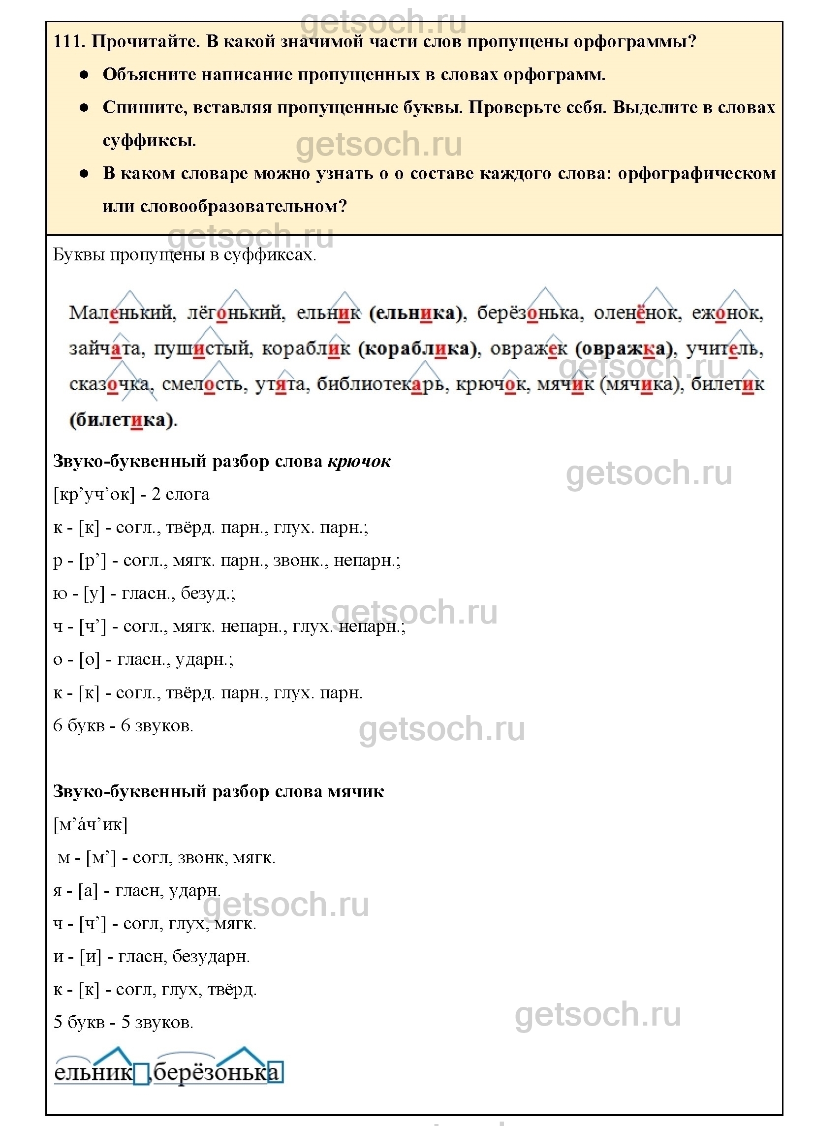 Рассмотрим ответы на Упражнение 111 из учебника по русскому языку для 4 класса Канакиной
