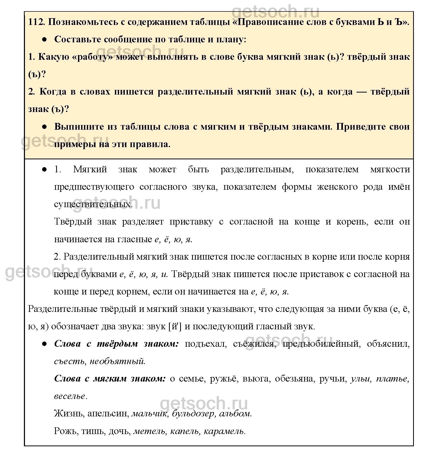 Рассмотрим ответы на Упражнение 112 из учебника по русскому языку для 4 класса Канакиной