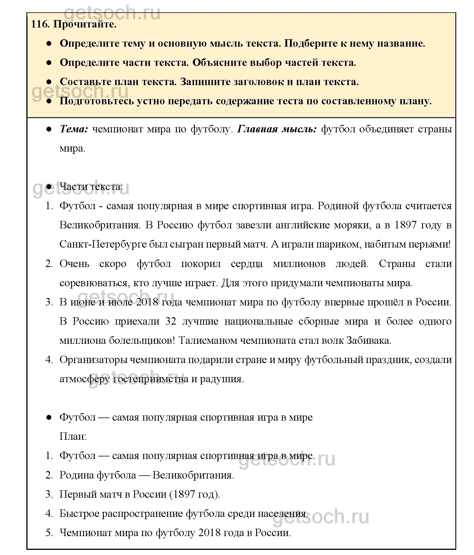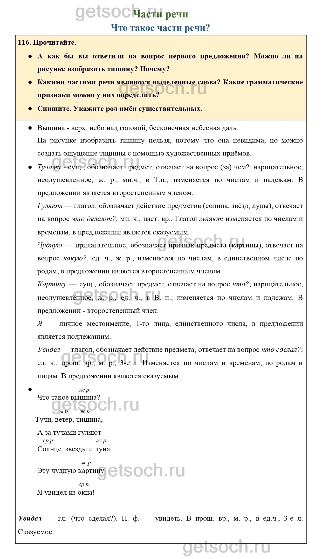 Рассмотрим ответы на Упражнение 116 из учебника по русскому языку для 4 класса Канакиной