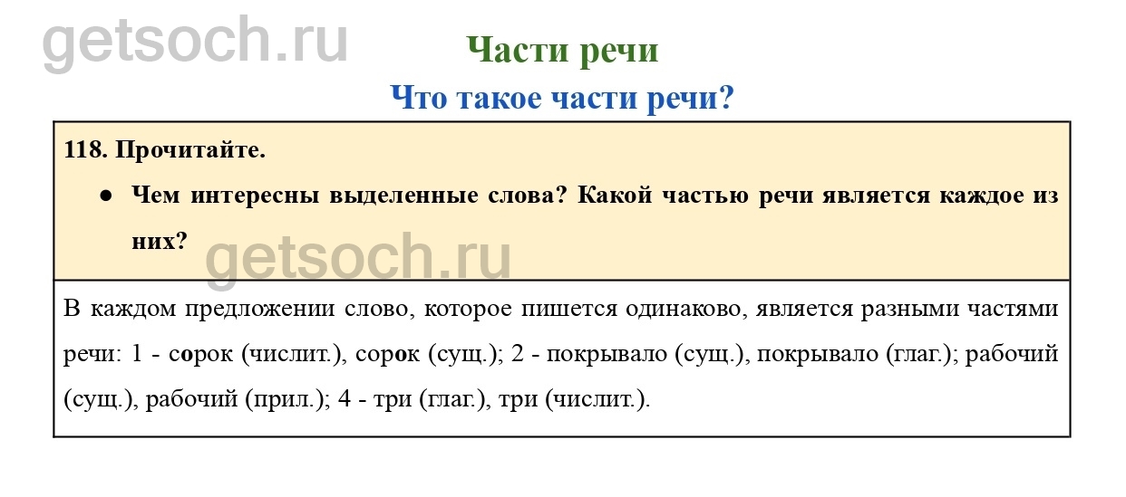 Рассмотрим ответы на Упражнение 118 из учебника по русскому языку для 4 класса Канакиной