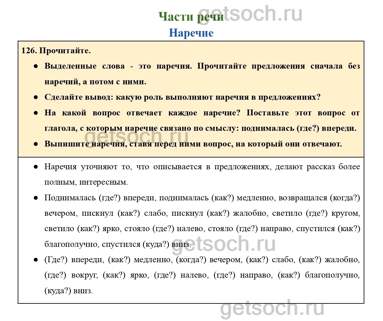 Рассмотрим ответы на Упражнение 126 из учебника по русскому языку для 4 класса Канакиной