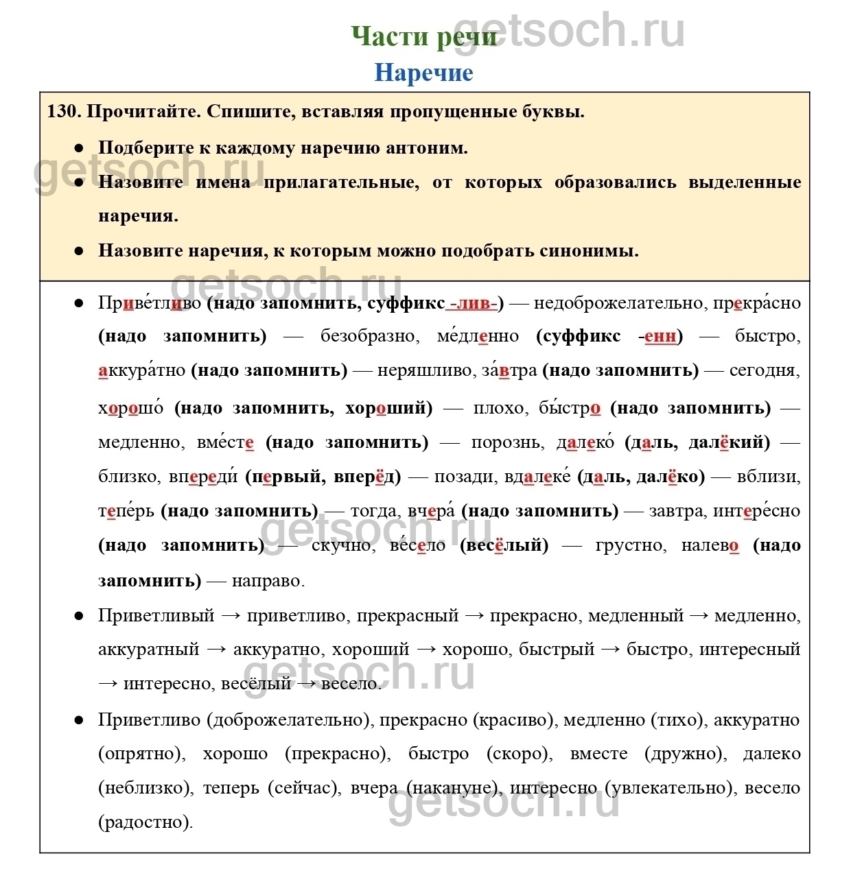 Рассмотрим ответы на Упражнение 130 из учебника по русскому языку для 4 класса Канакиной