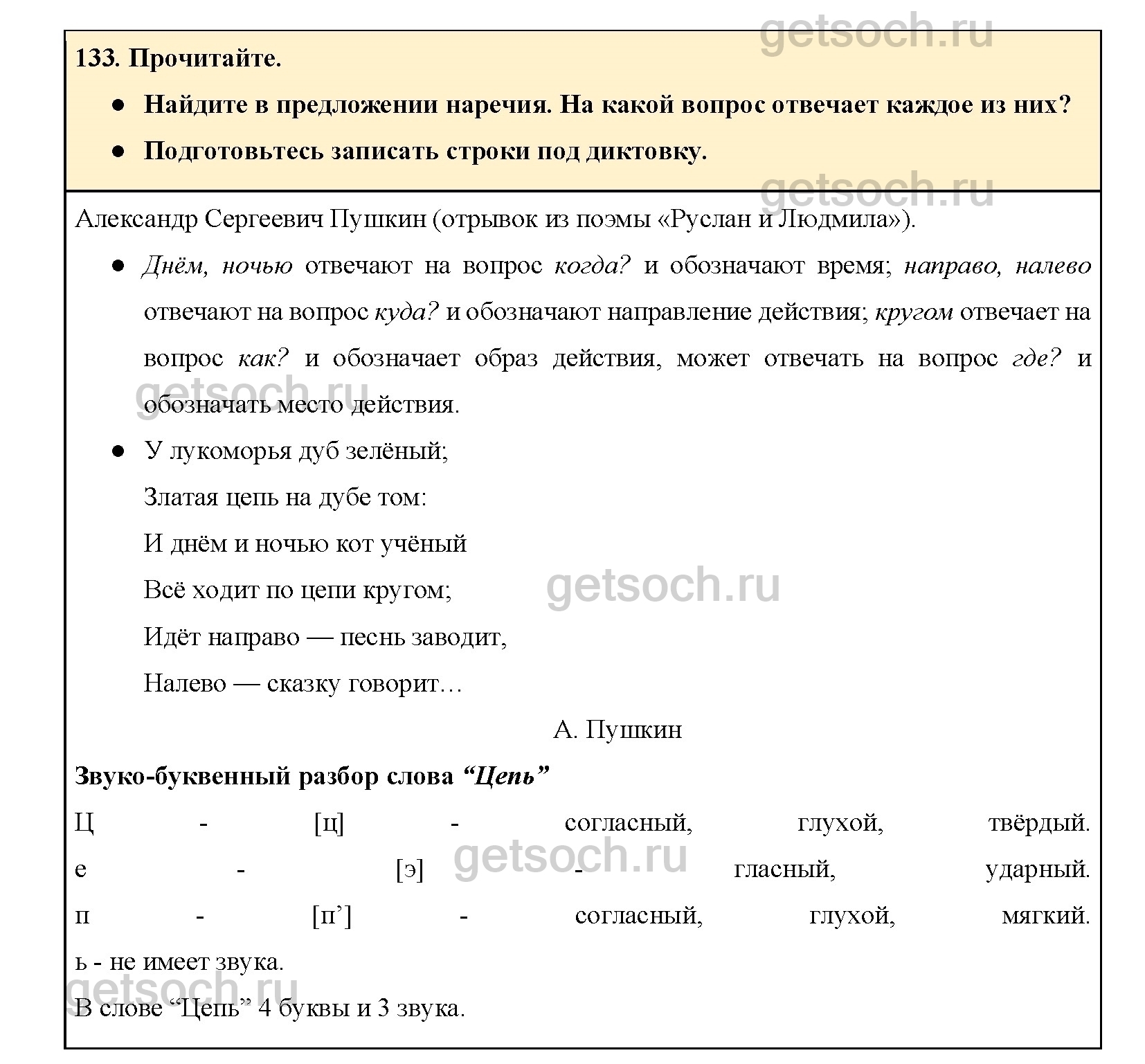 Рассмотрим ответы на Упражнение 133 из учебника по русскому языку для 4 класса Канакиной