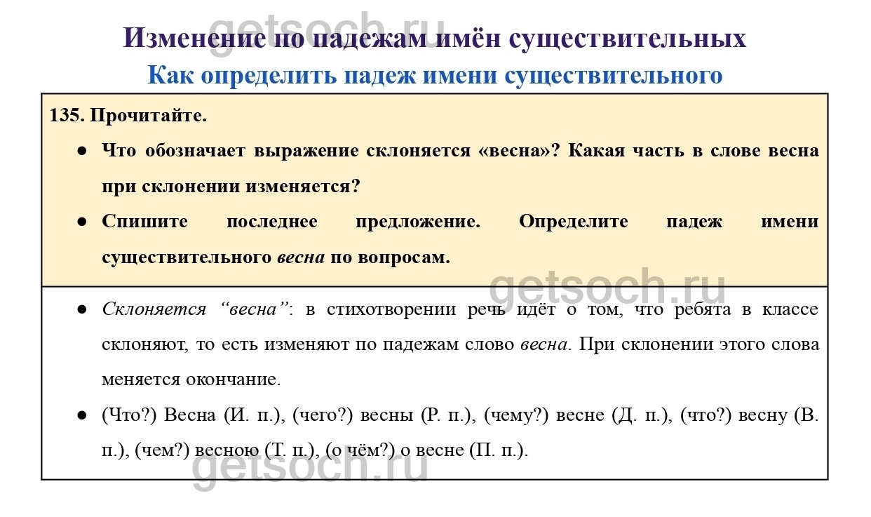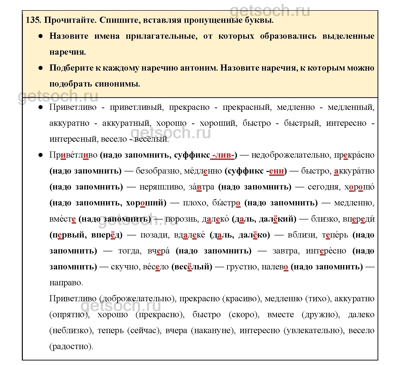 Рассмотрим ответы на Упражнение 135 из учебника по русскому языку для 4 класса Канакиной