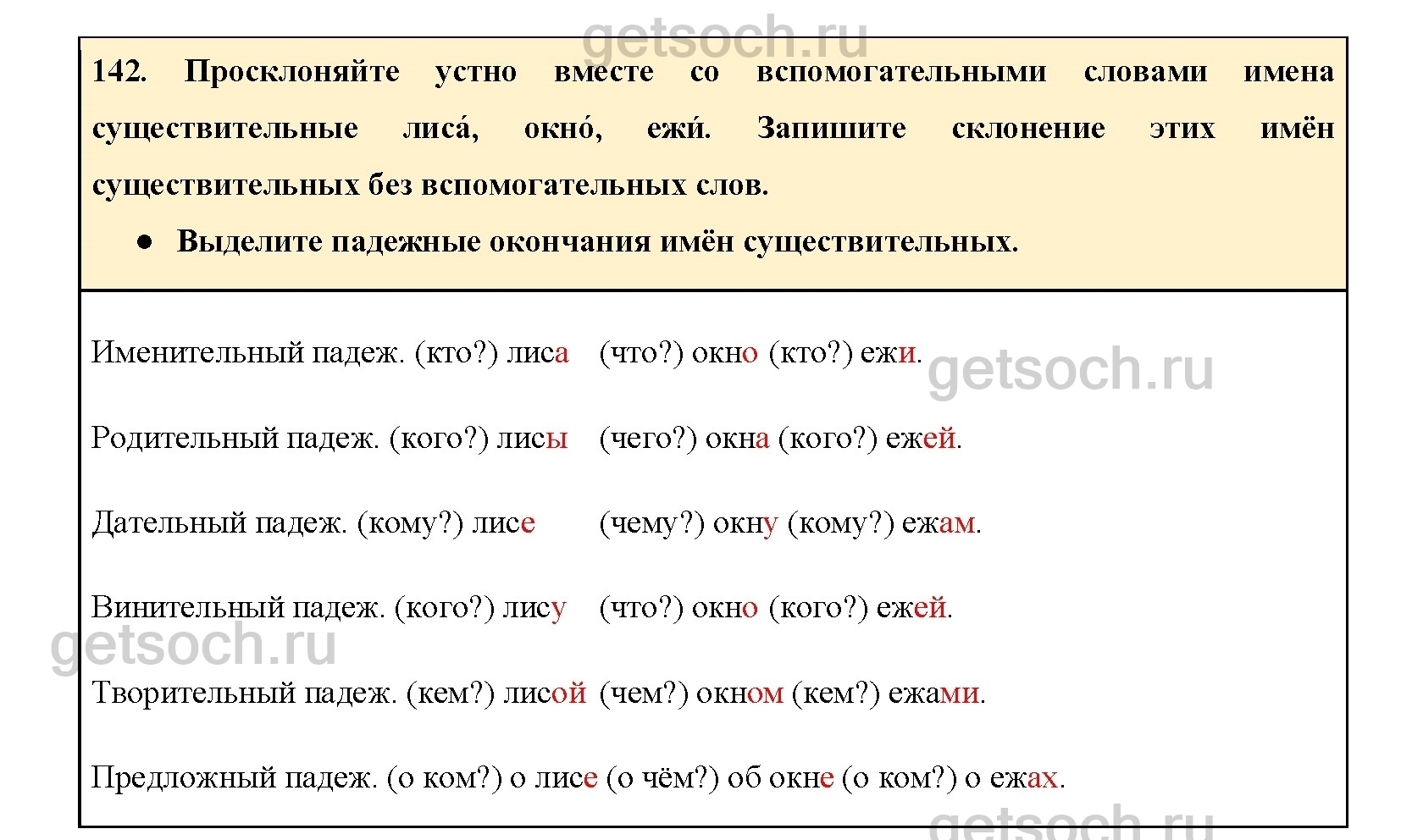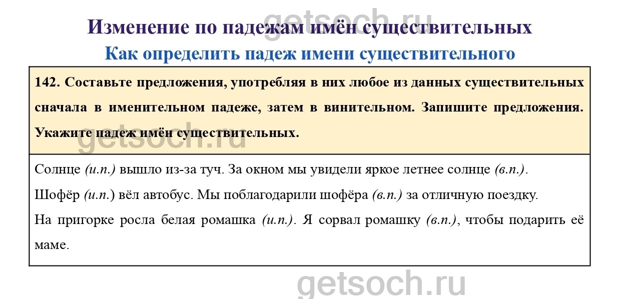 Рассмотрим ответы на Упражнение 142 из учебника по русскому языку для 4 класса Канакиной