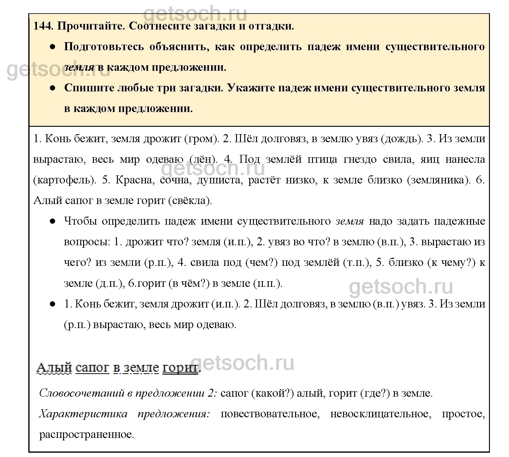 Рассмотрим ответы на Упражнение 144 из учебника по русскому языку для 4 класса Канакиной