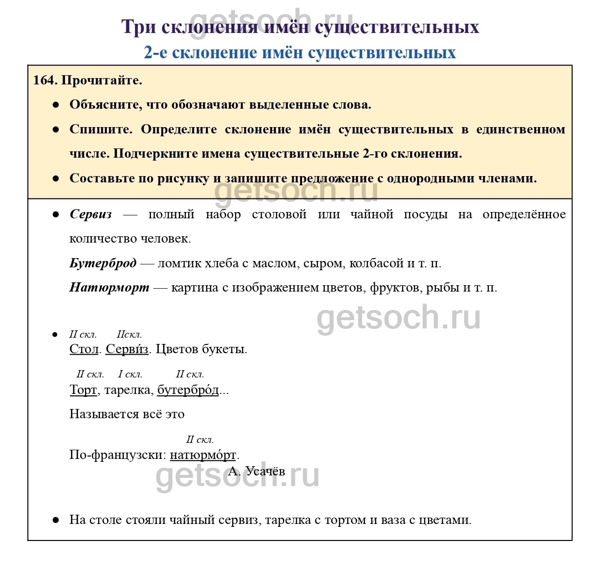 Рассмотрим ответы на Упражнение 164 из учебника по русскому языку для 4 класса Канакиной