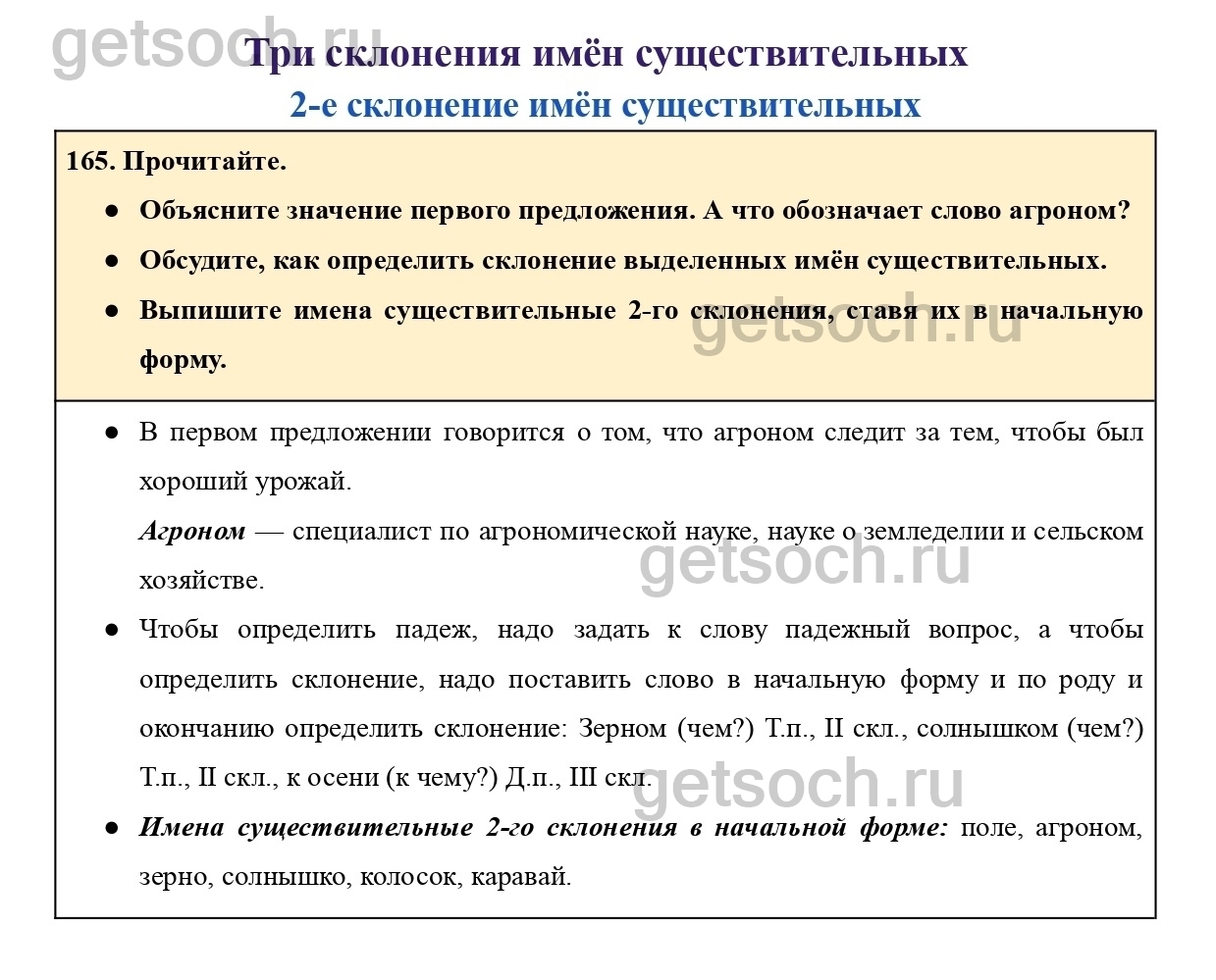 Рассмотрим ответы на Упражнение 165 из учебника по русскому языку для 4 класса Канакиной
