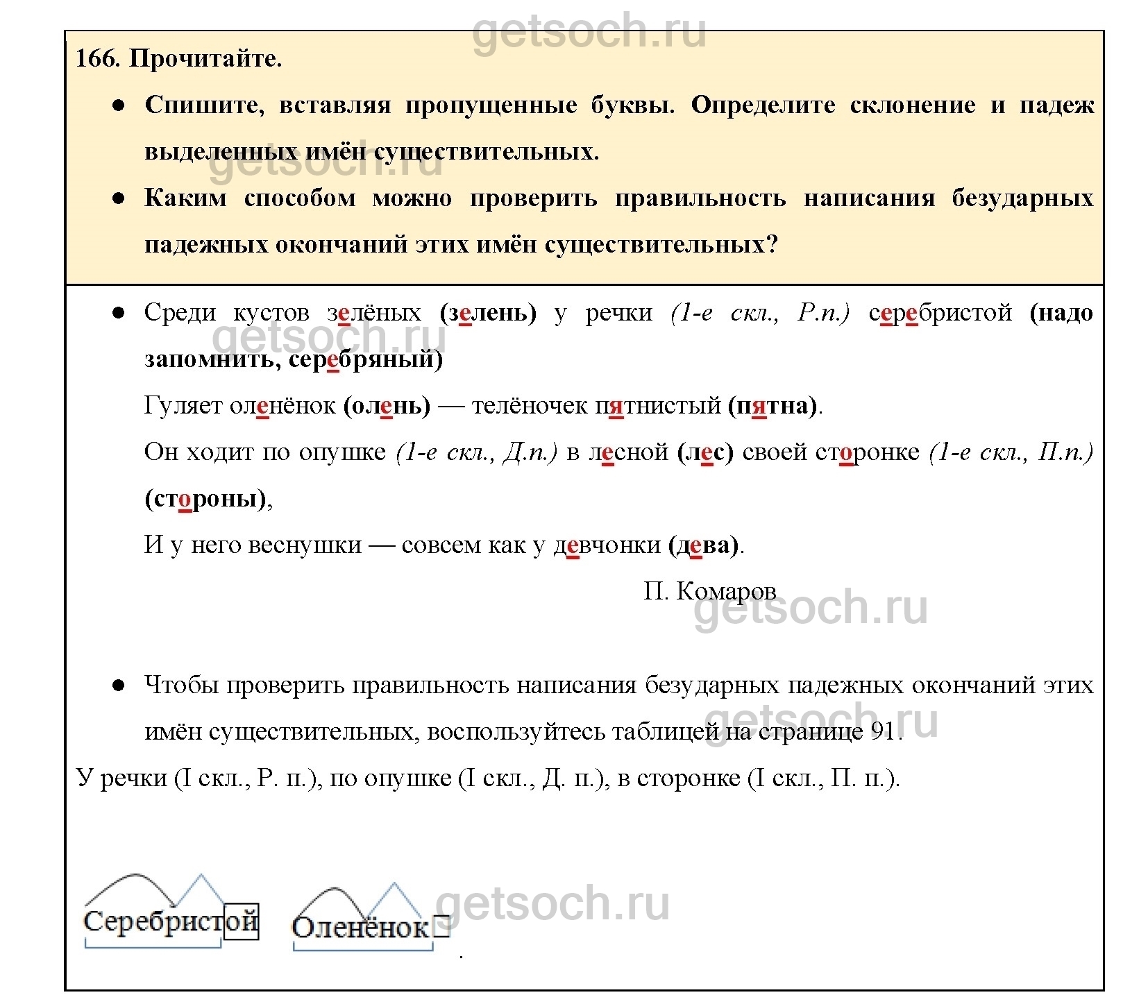 Рассмотрим ответы на Упражнение 166 из учебника по русскому языку для 4 класса Канакиной