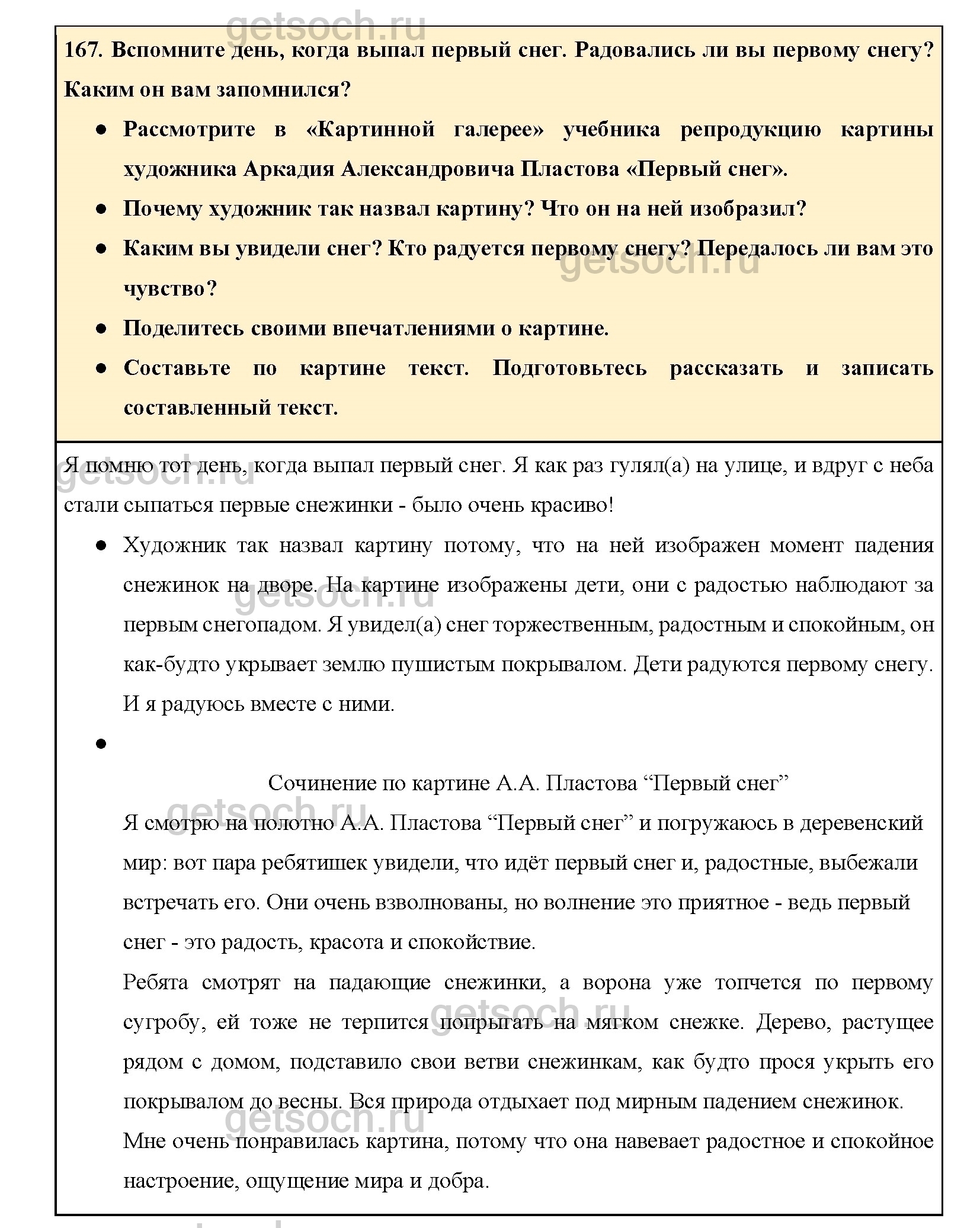 Рассмотрим ответы на Упражнение 167 из учебника по русскому языку для 4 класса Канакиной