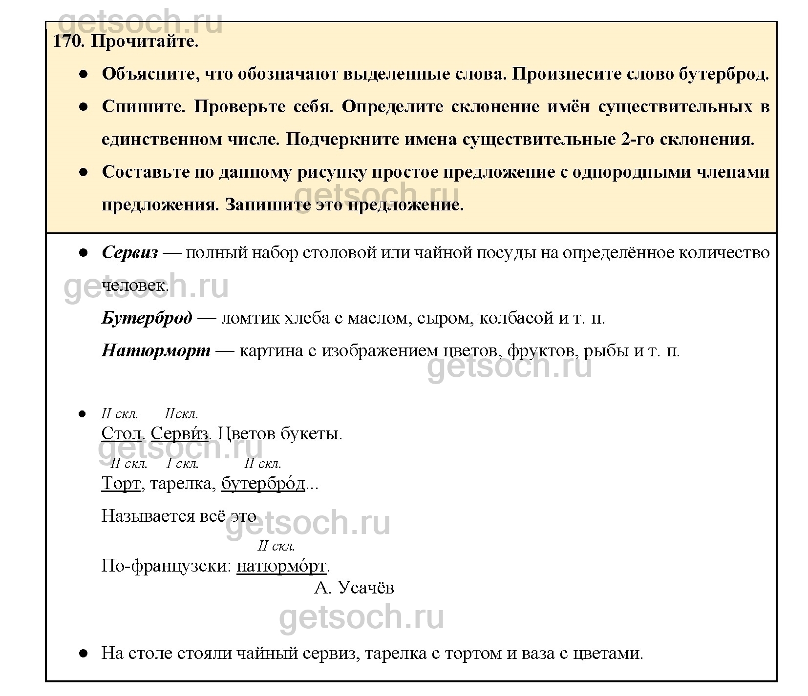 Рассмотрим ответы на Упражнение 170 из учебника по русскому языку для 4 класса Канакиной