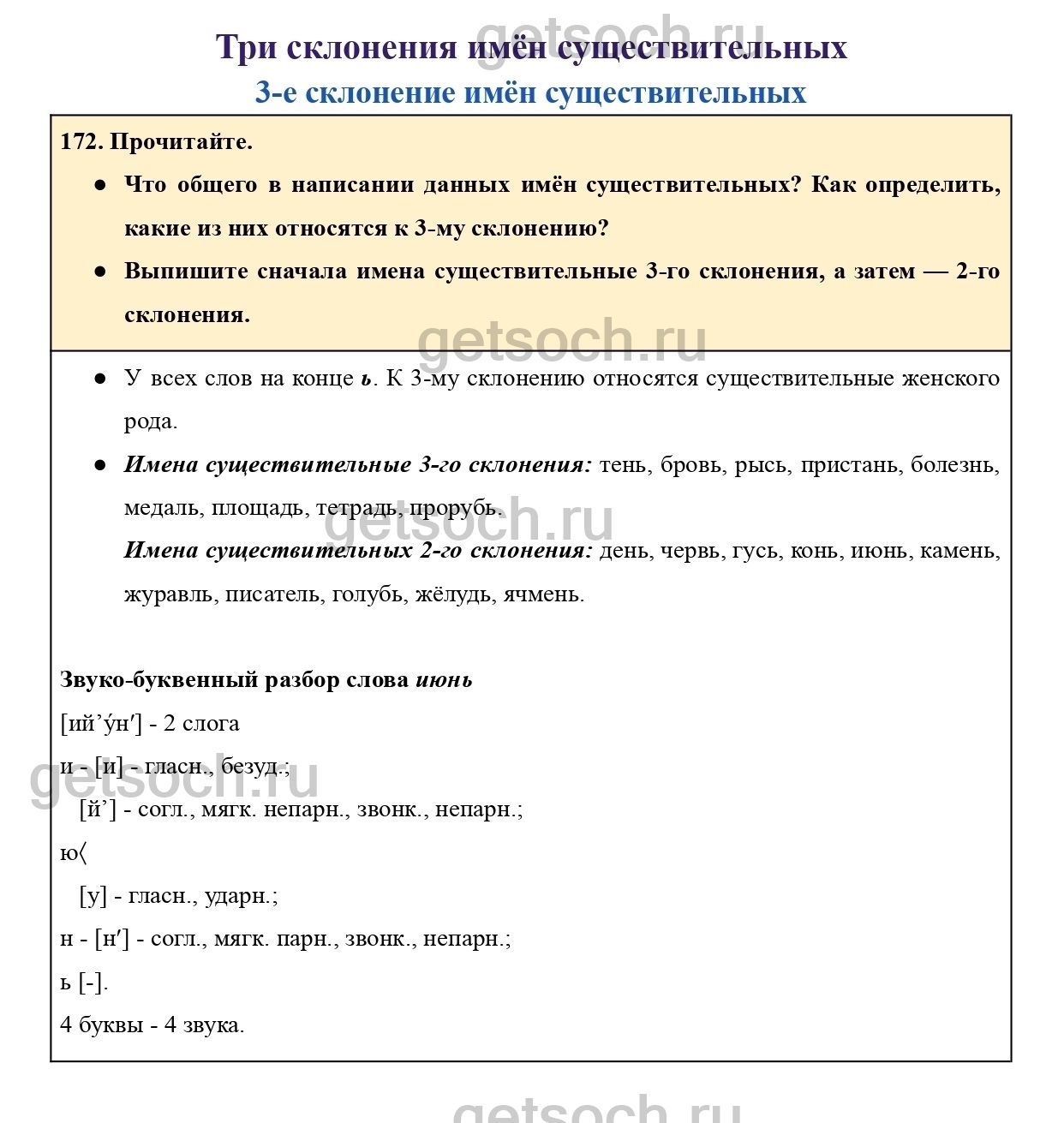 Рассмотрим ответы на Упражнение 172 из учебника по русскому языку для 4 класса Канакиной