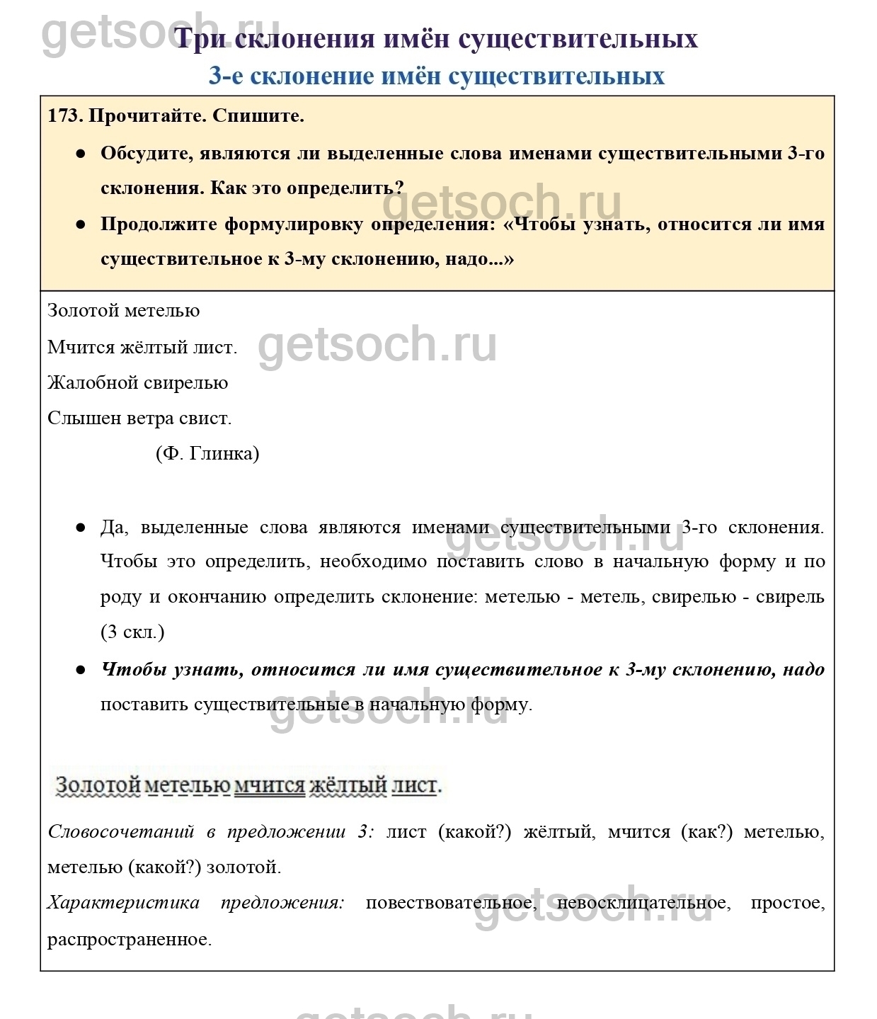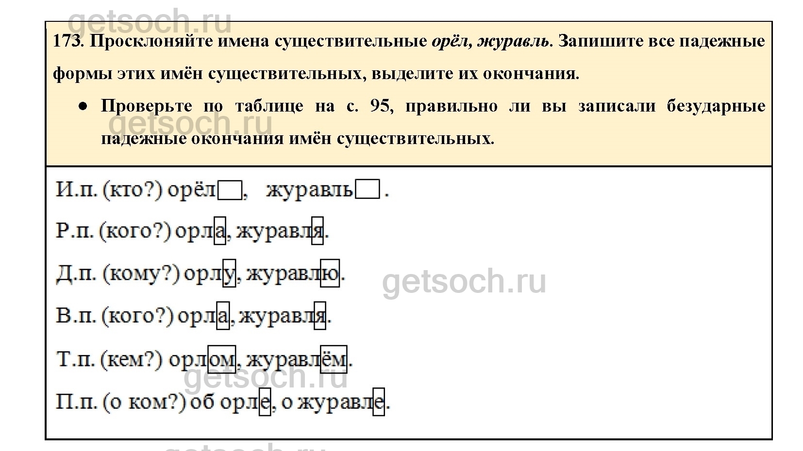 Рассмотрим ответы на Упражнение 173 из учебника по русскому языку для 4 класса Канакиной