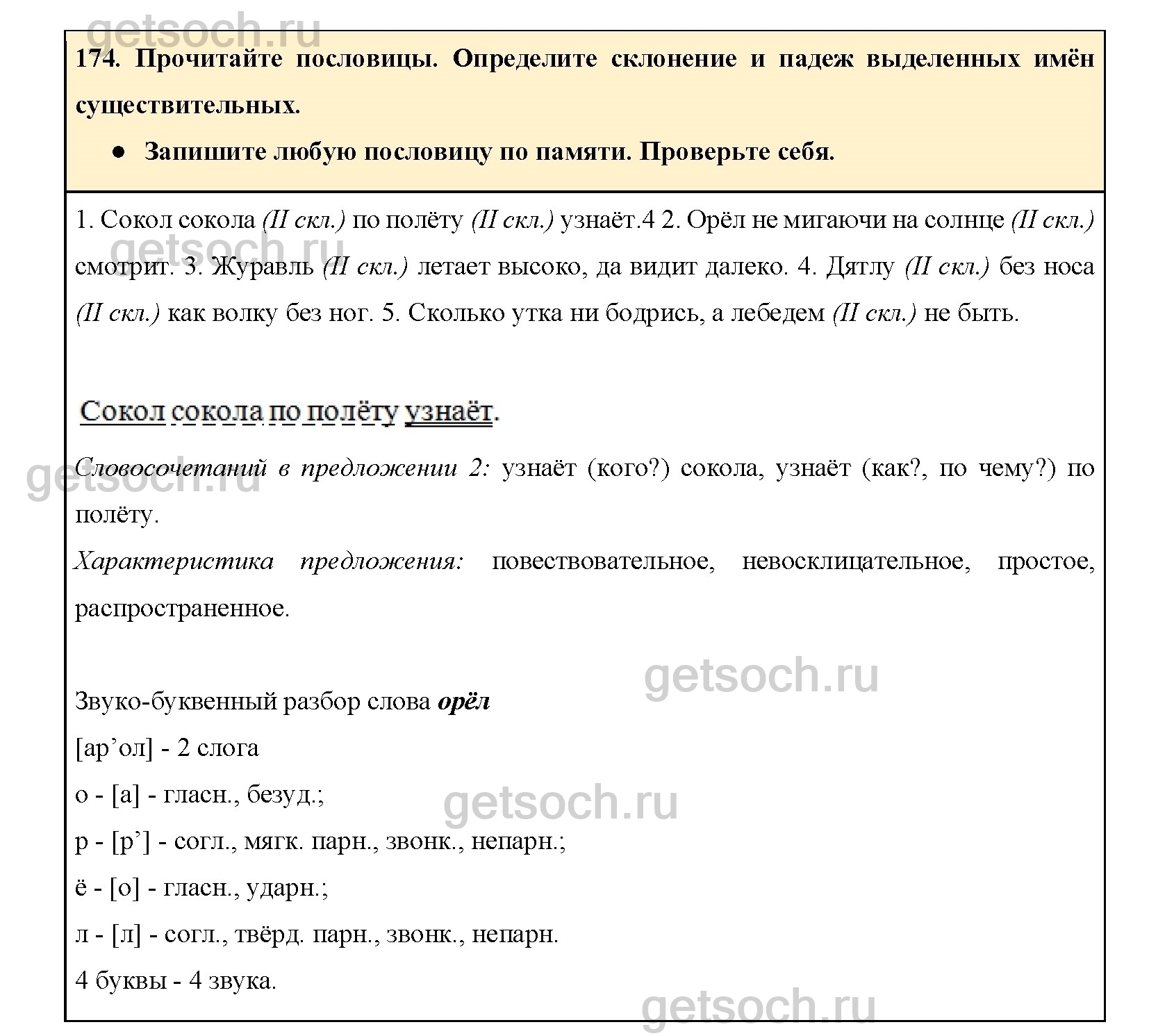 Рассмотрим ответы на Упражнение 174 из учебника по русскому языку для 4 класса Канакиной