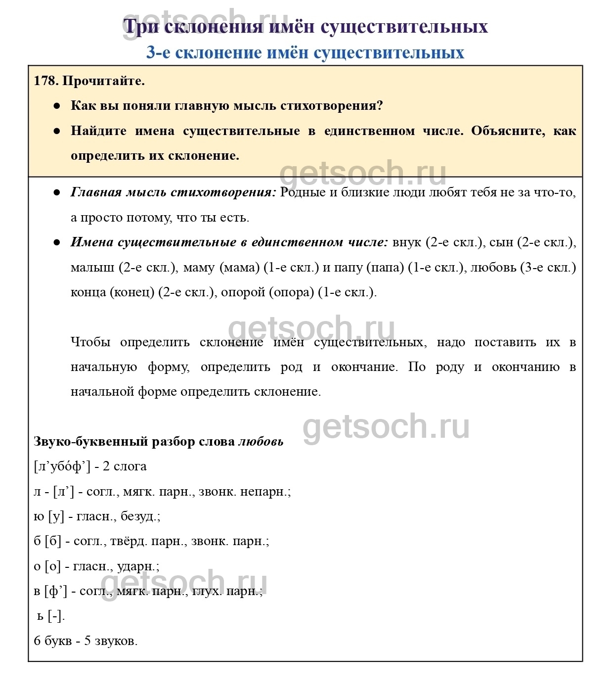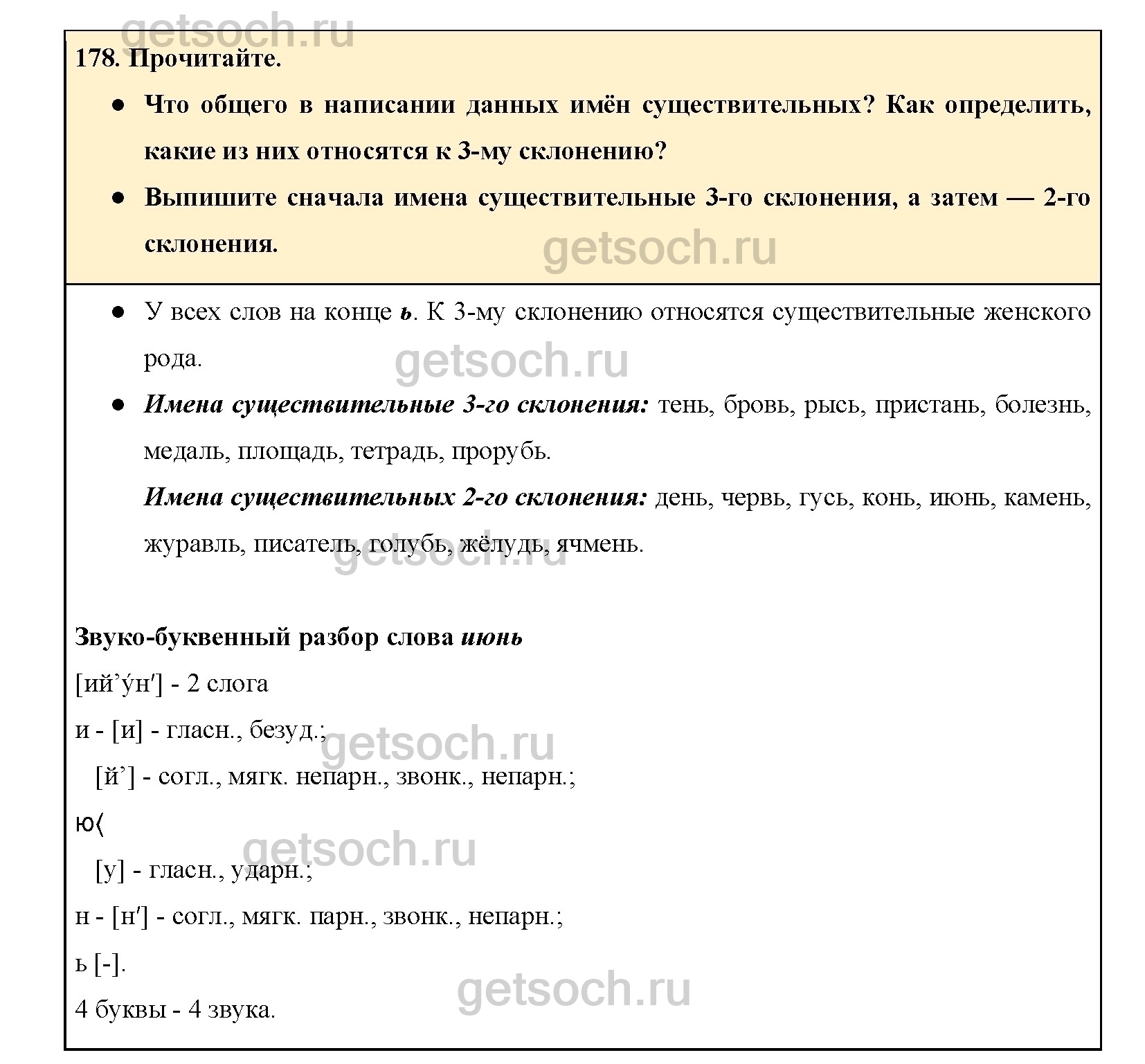 Рассмотрим ответы на Упражнение 178 из учебника по русскому языку для 4 класса Канакиной