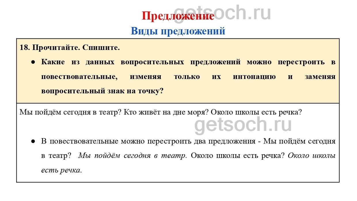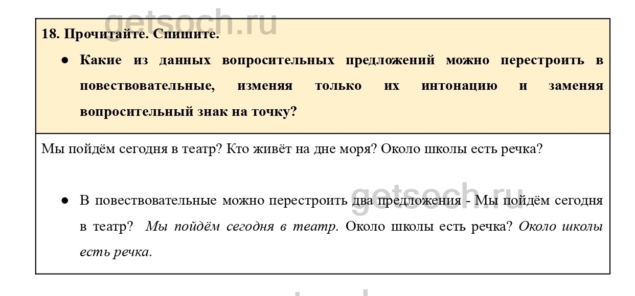 Рассмотрим ответы на Упражнение 18 из учебника по русскому языку для 4 класса Канакиной