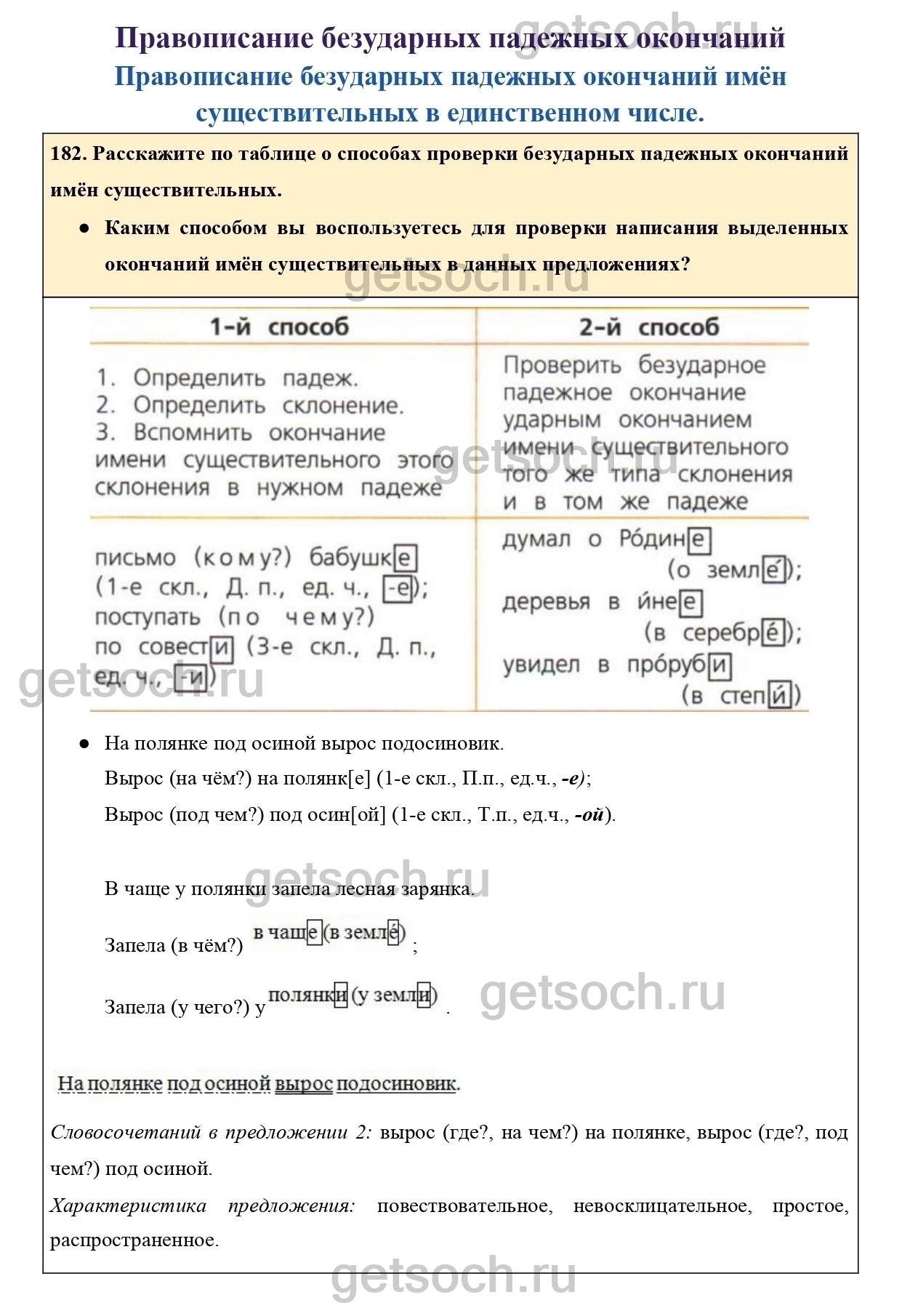 Рассмотрим ответы на Упражнение 182 из учебника по русскому языку для 4 класса Канакиной