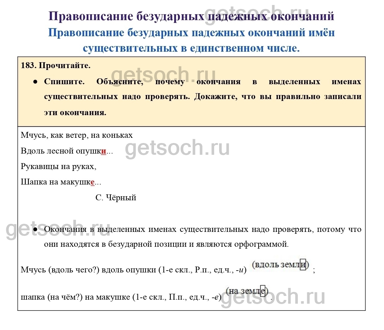 Рассмотрим ответы на Упражнение 183 из учебника по русскому языку для 4 класса Канакиной