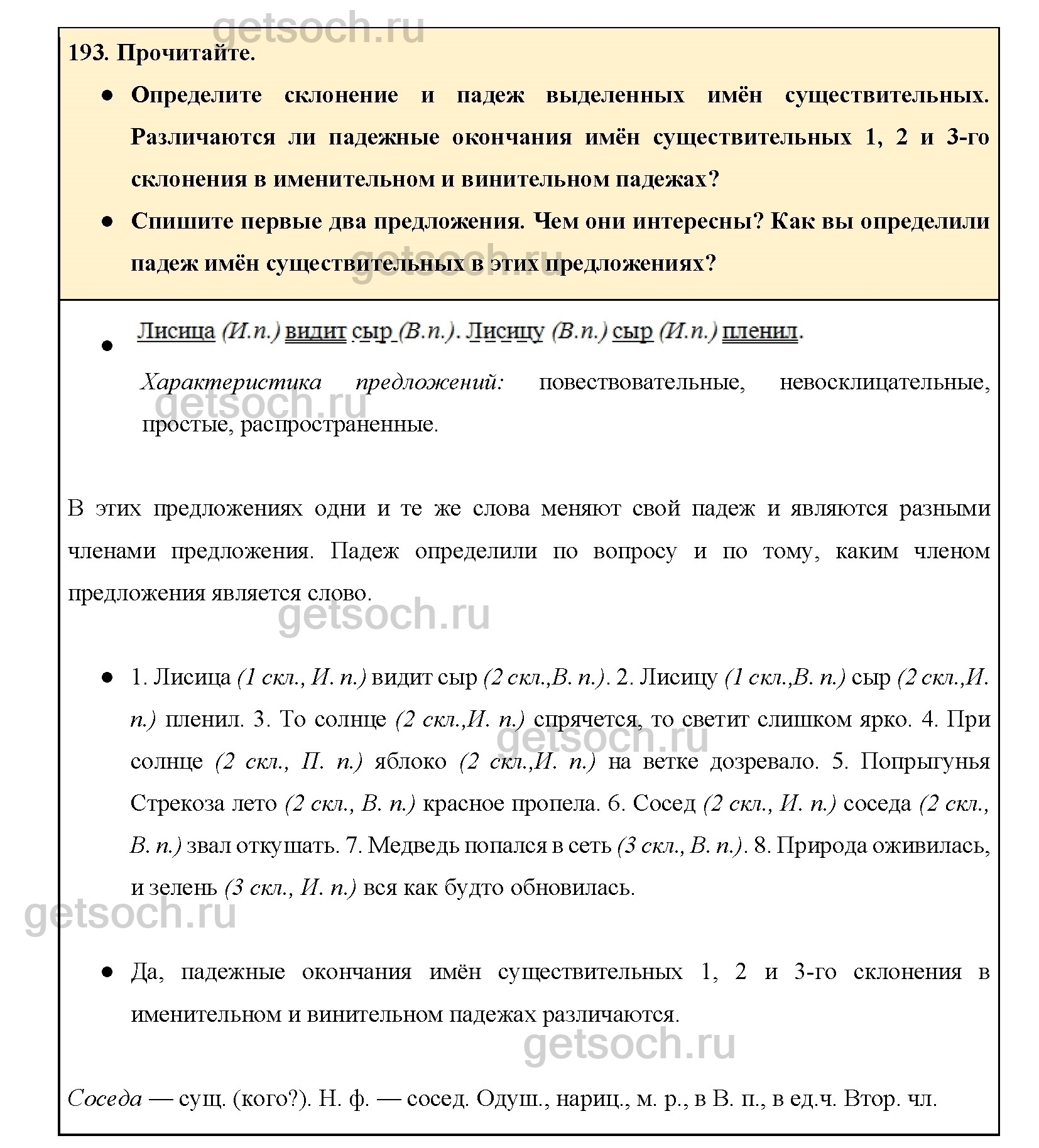 Рассмотрим ответы на Упражнение 193 из учебника по русскому языку для 4 класса Канакиной