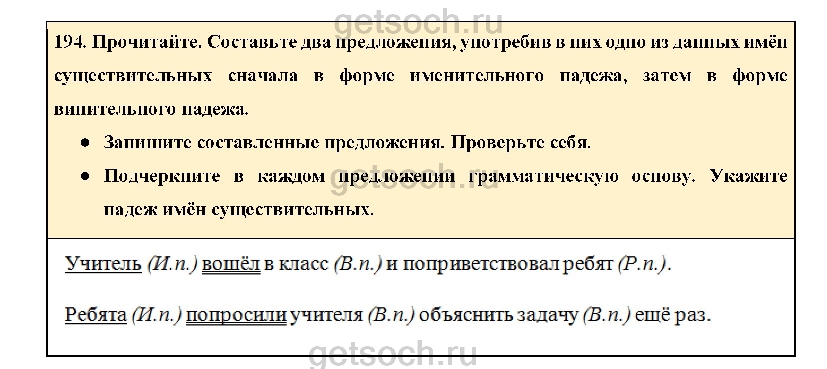 Рассмотрим ответы на Упражнение 194 из учебника по русскому языку для 4 класса Канакиной