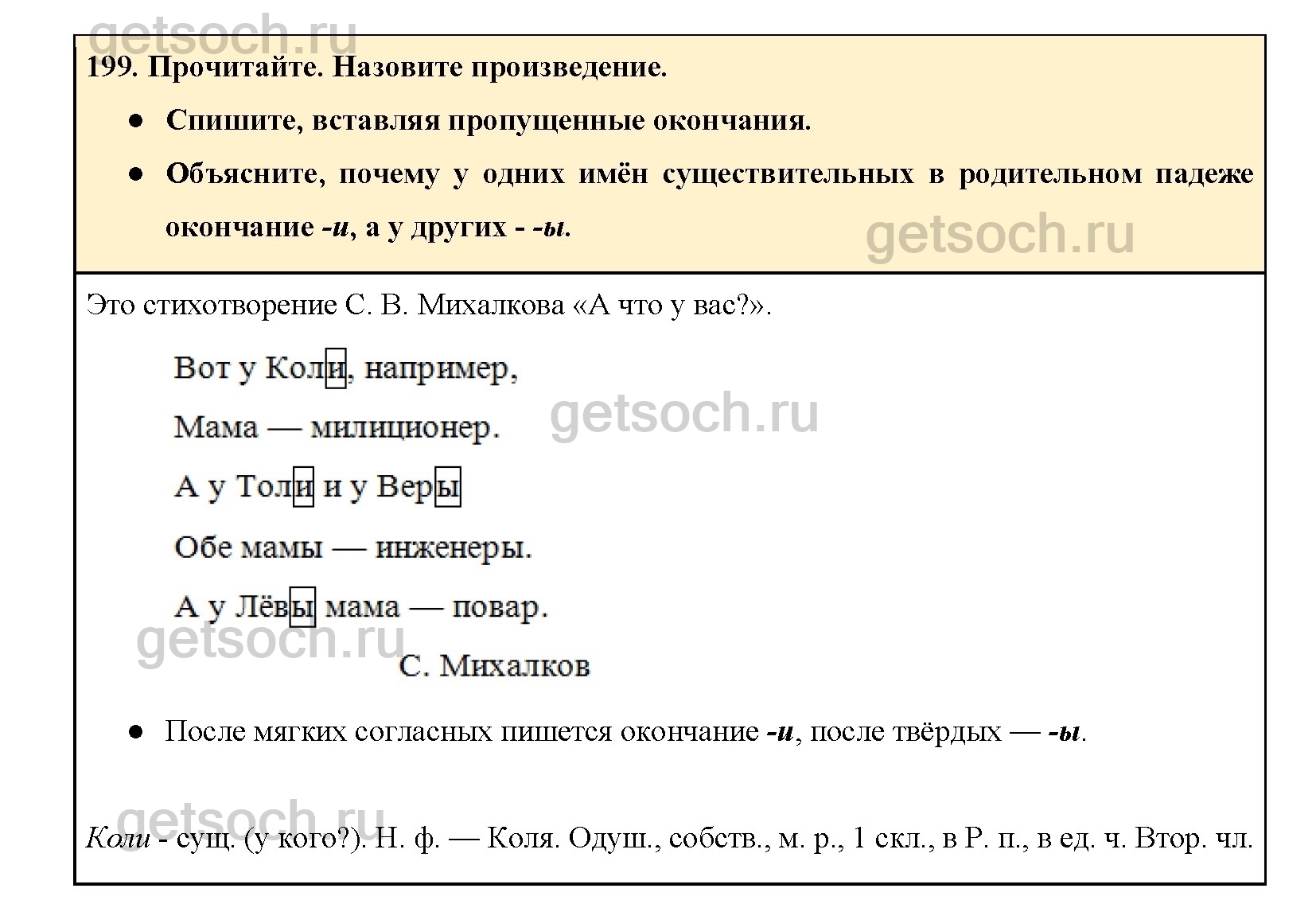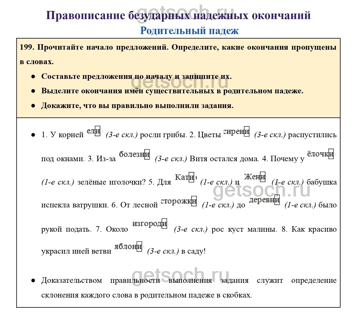 Рассмотрим ответы на Упражнение 199 из учебника по русскому языку для 4 класса Канакиной