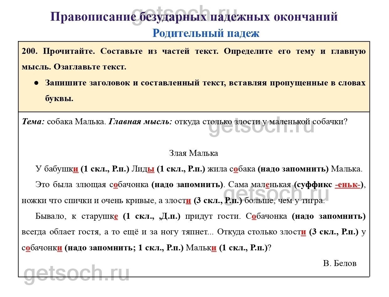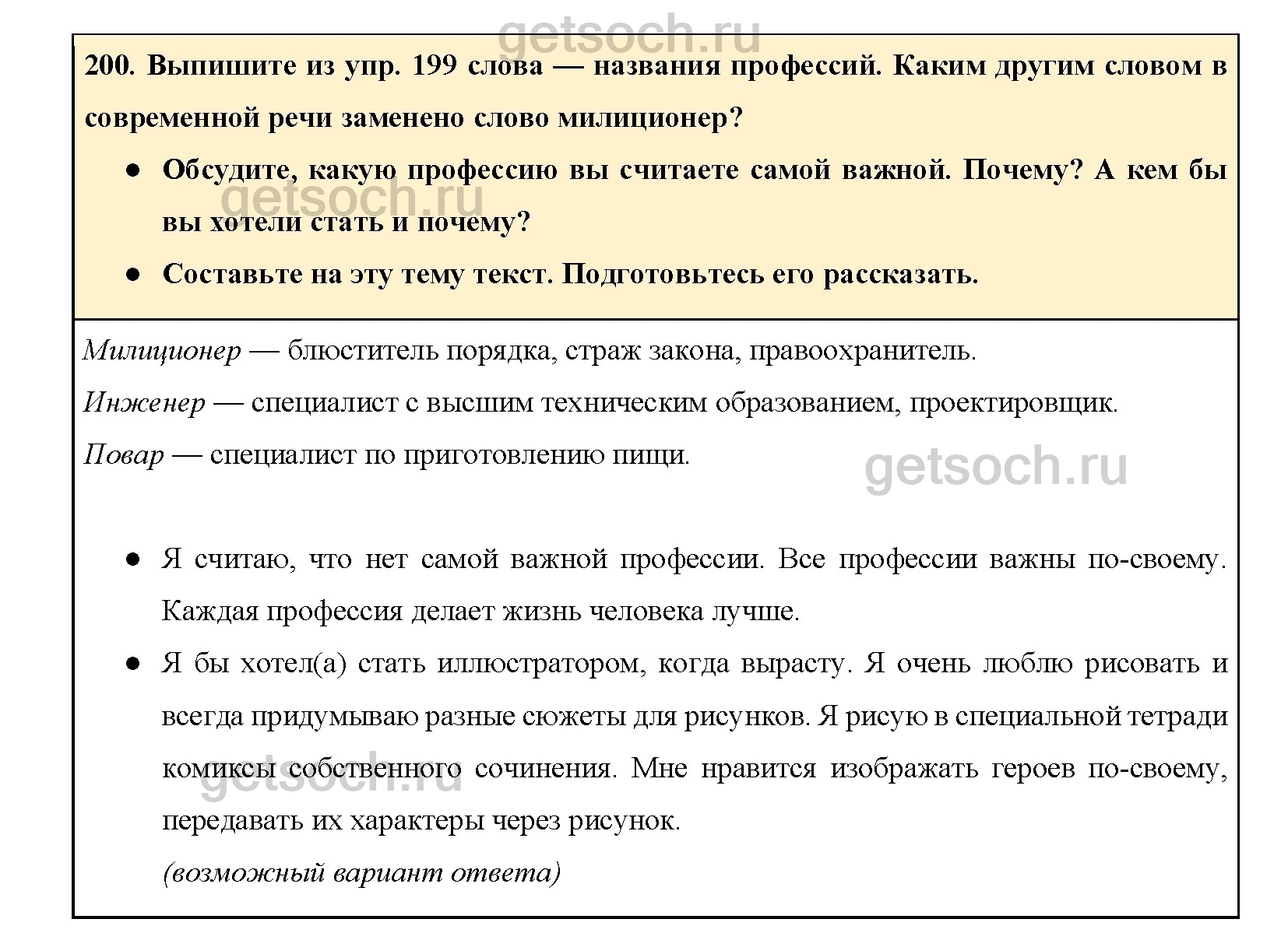 Рассмотрим ответы на Упражнение 200 из учебника по русскому языку для 4 класса Канакиной