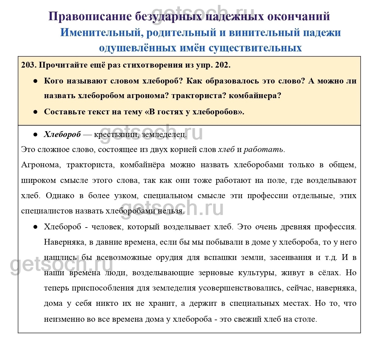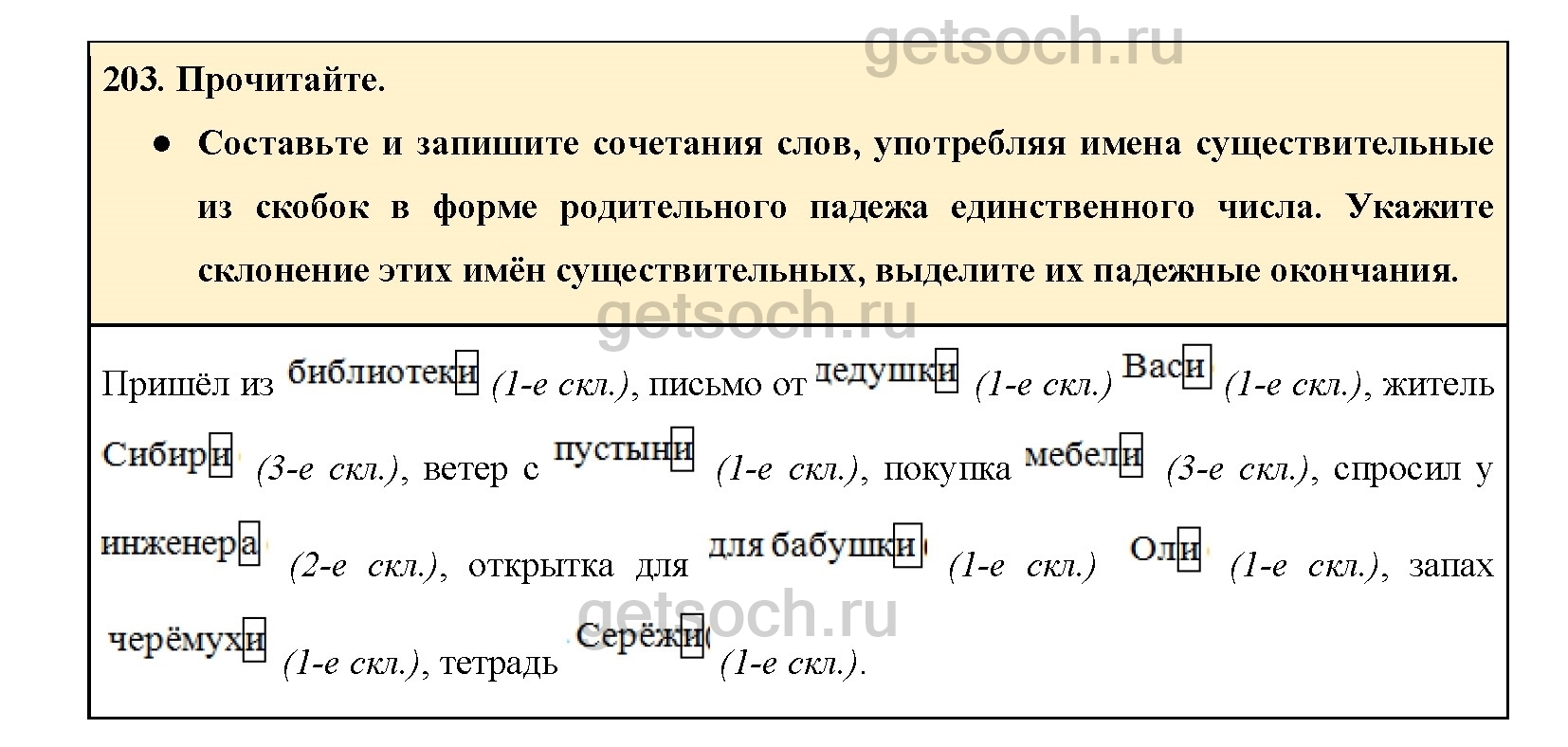 Рассмотрим ответы на Упражнение 203 из учебника по русскому языку для 4 класса Канакиной