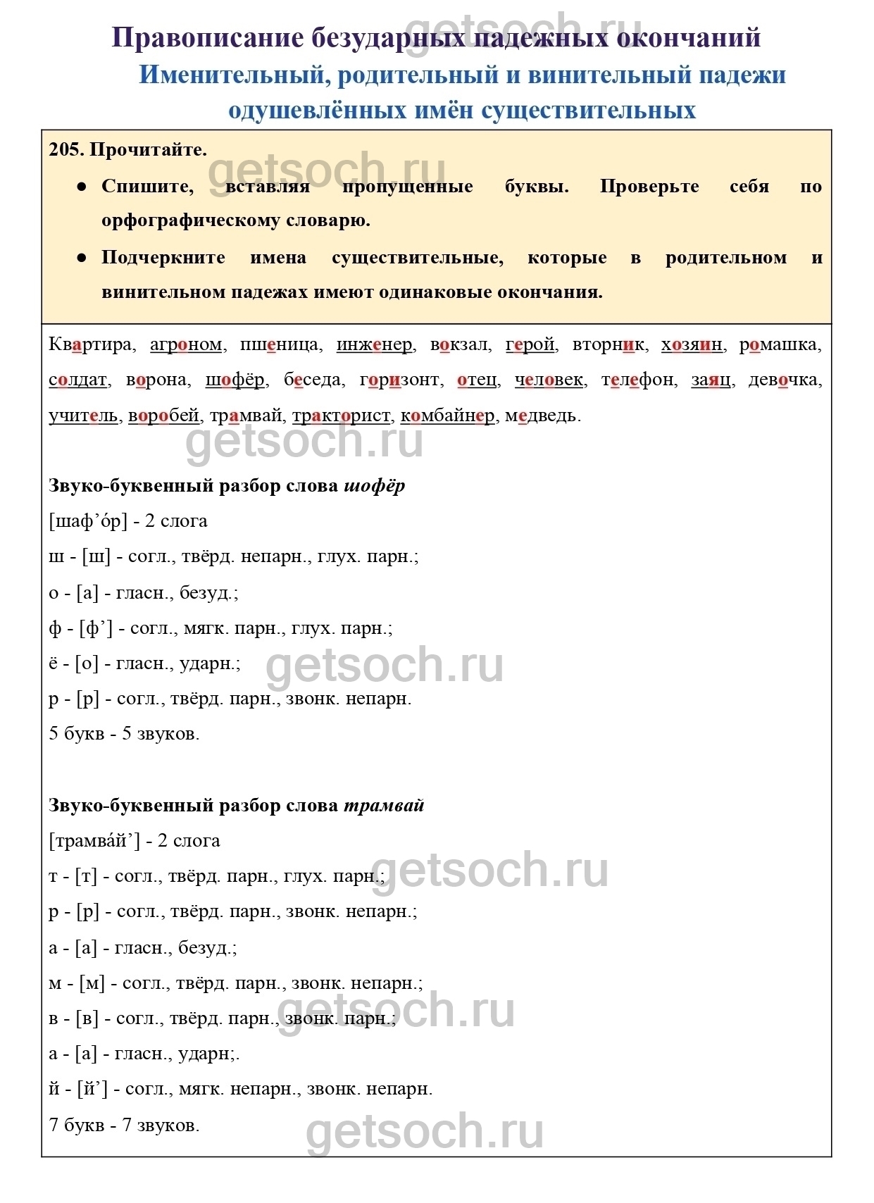 Рассмотрим ответы на Упражнение 205 из учебника по русскому языку для 4 класса Канакиной