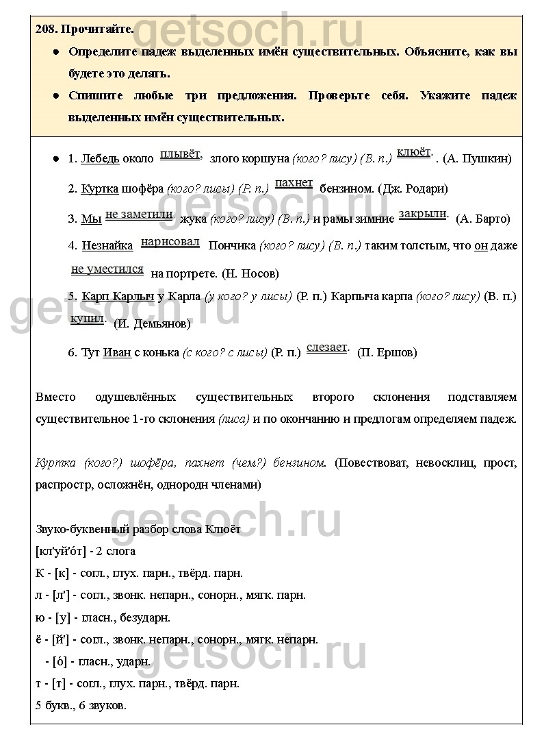 Рассмотрим ответы на Упражнение 208 из учебника по русскому языку для 4 класса Канакиной