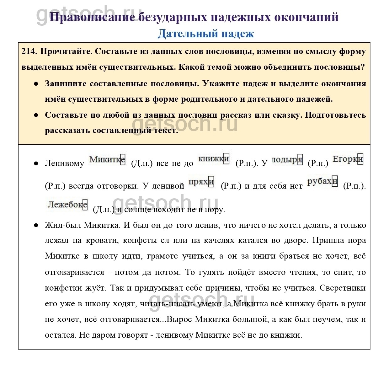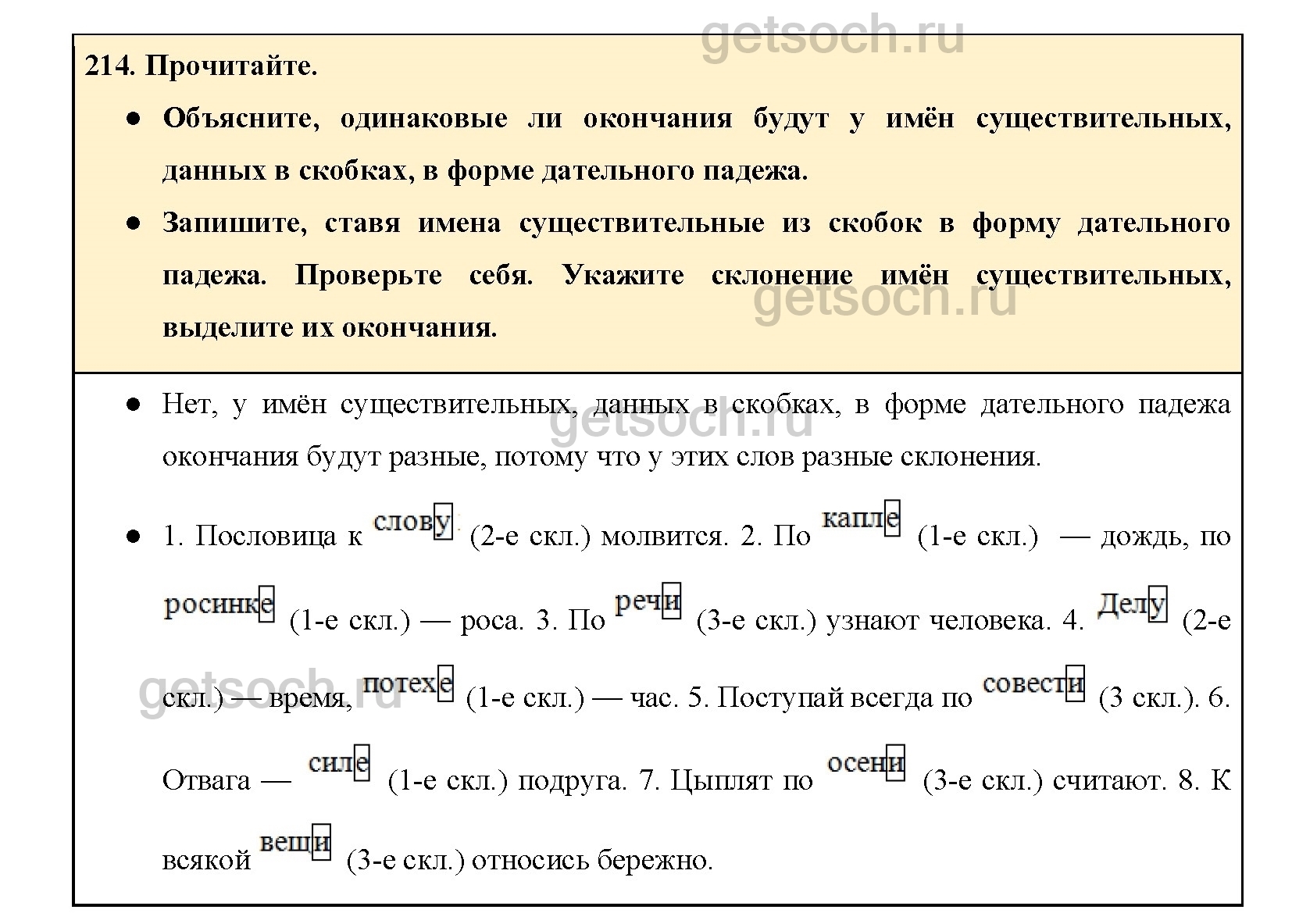 Рассмотрим ответы на Упражнение 214 из учебника по русскому языку для 4 класса Канакиной