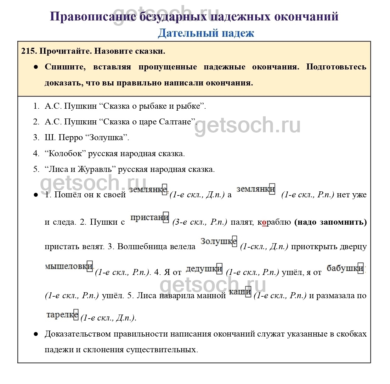 Рассмотрим ответы на Упражнение 215 из учебника по русскому языку для 4 класса Канакиной