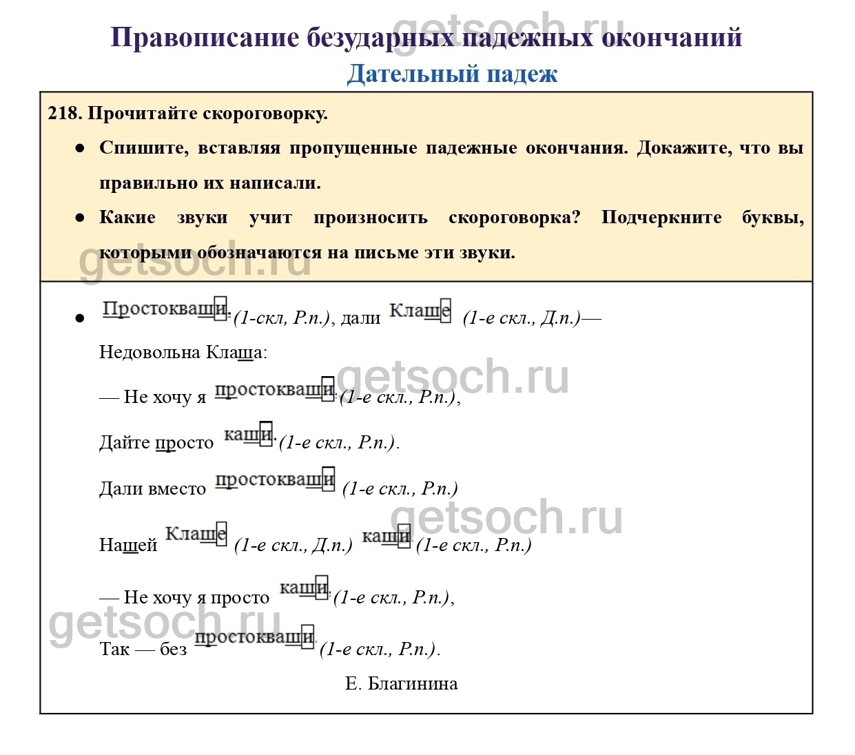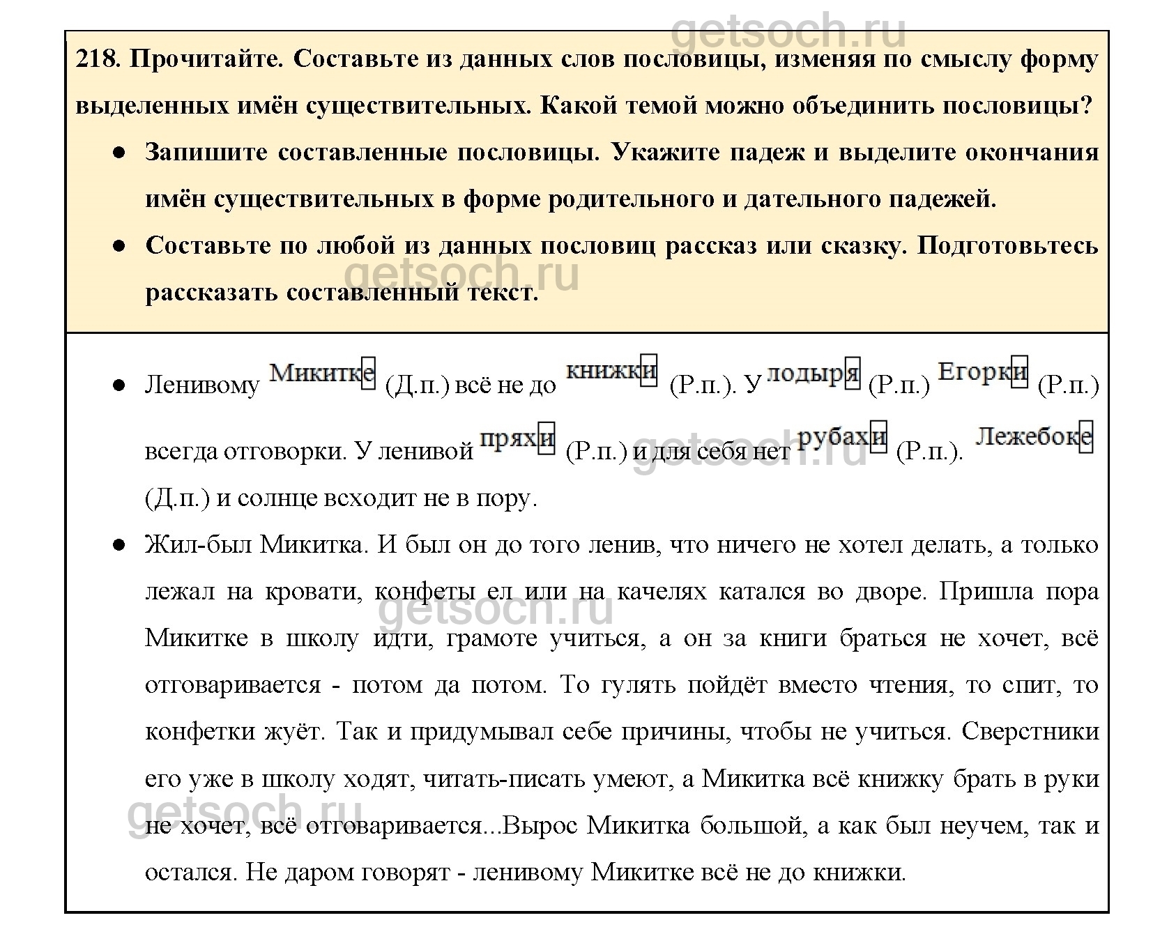 Рассмотрим ответы на Упражнение 218 из учебника по русскому языку для 4 класса Канакиной