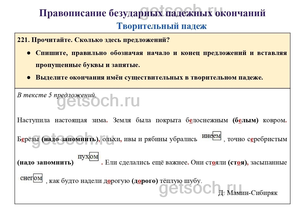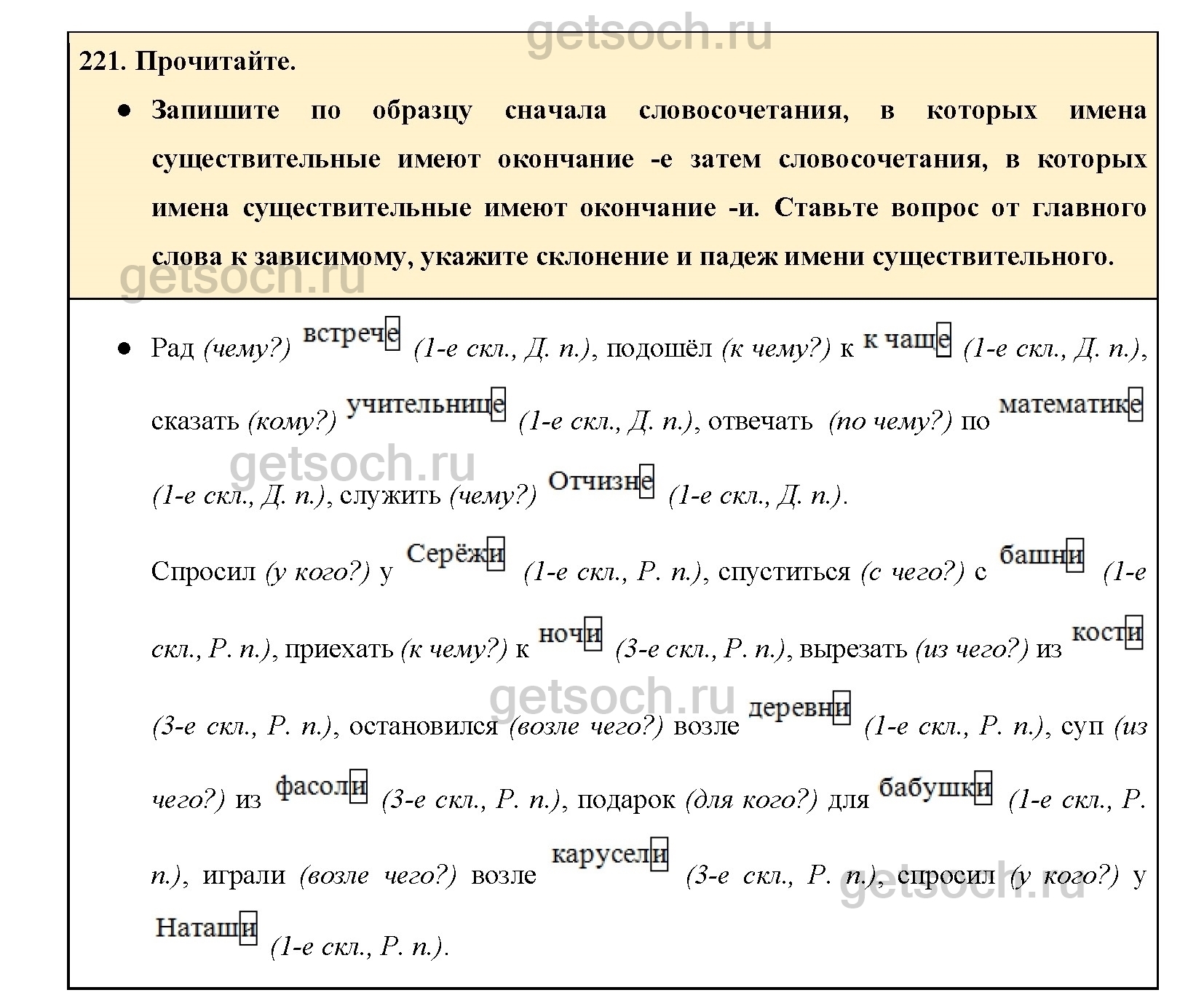 Рассмотрим ответы на Упражнение 221 из учебника по русскому языку для 4 класса Канакиной