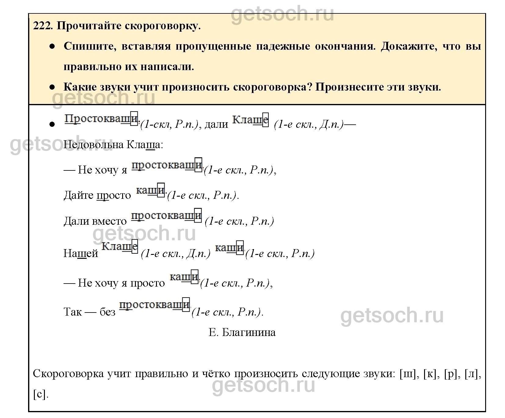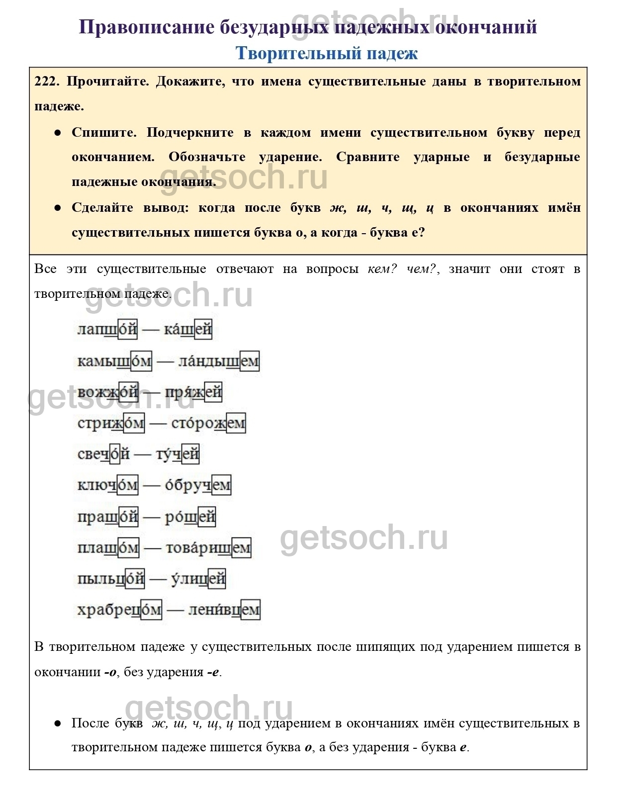 Рассмотрим ответы на Упражнение 222 из учебника по русскому языку для 4 класса Канакиной