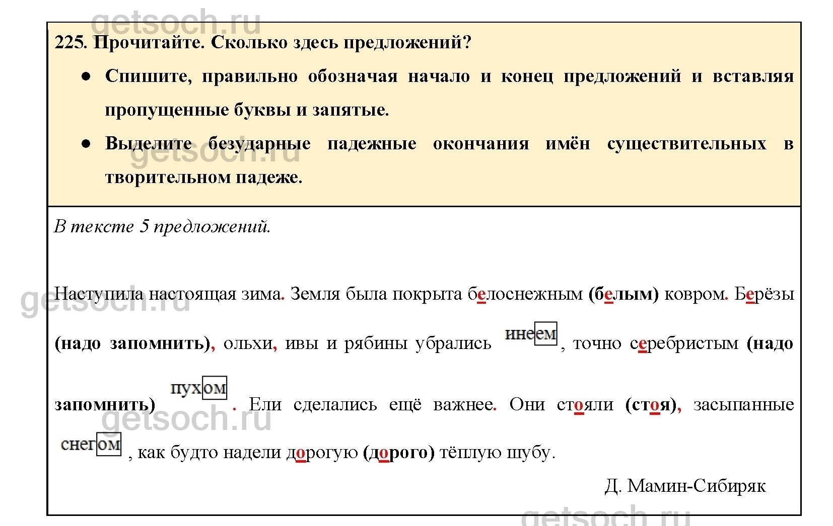 Рассмотрим ответы на Упражнение 225 из учебника по русскому языку для 4 класса Канакиной