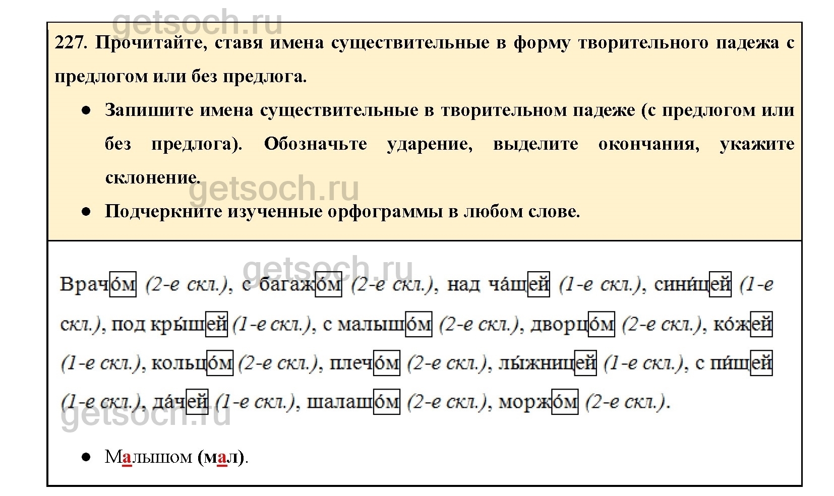 Рассмотрим ответы на Упражнение 227 из учебника по русскому языку для 4 класса Канакиной