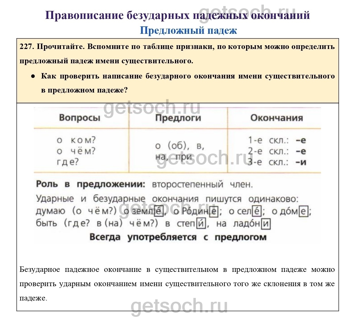 227. Прочитайте. Вспомните по таблице признаки, по которым можно определить предложный падеж имени существительного.