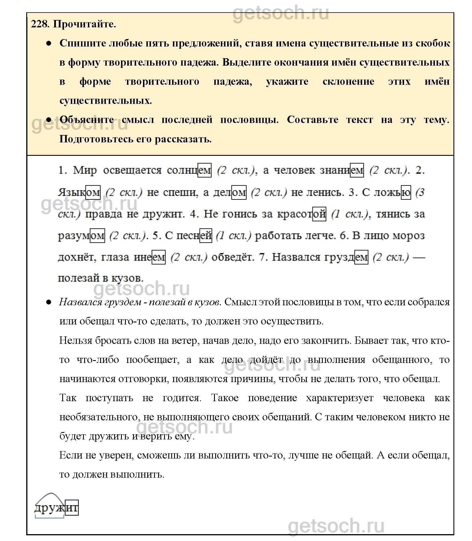 Рассмотрим ответы на Упражнение 228 из учебника по русскому языку для 4 класса Канакиной